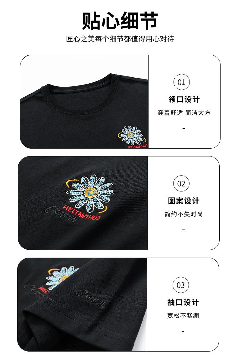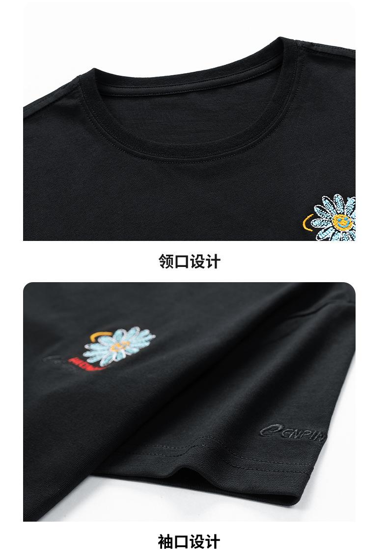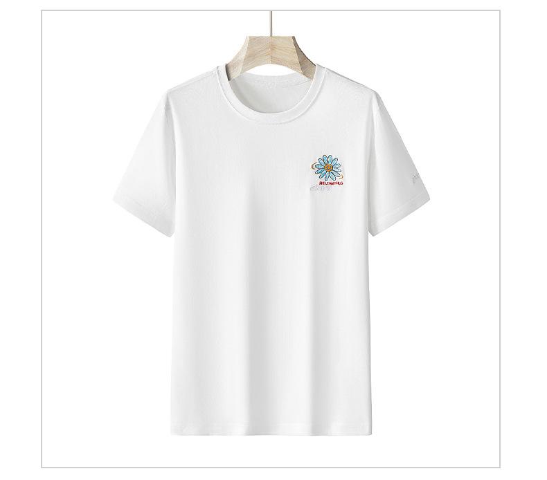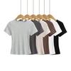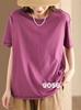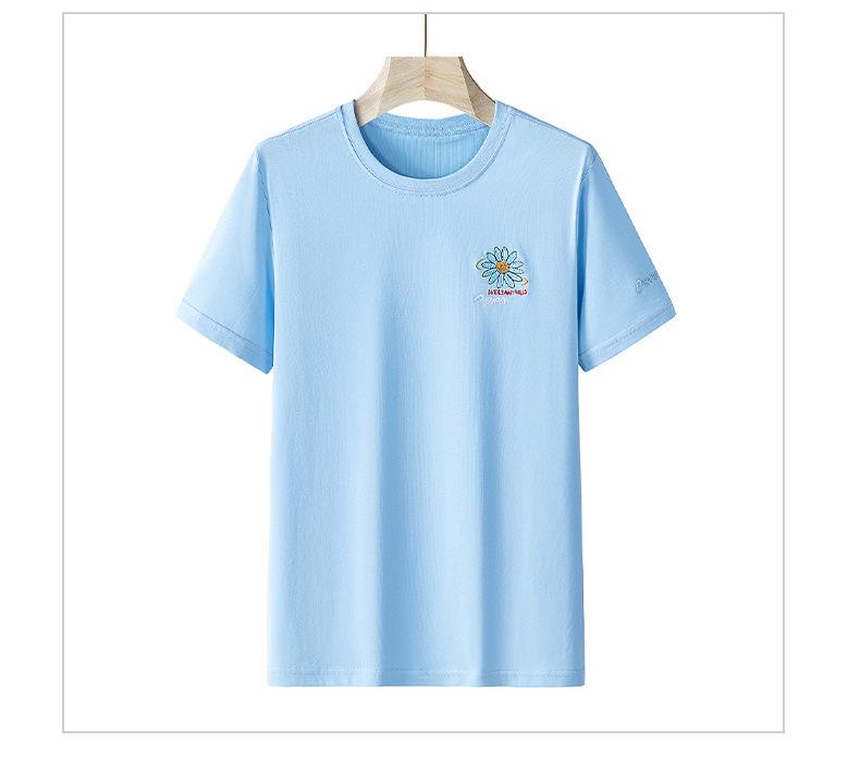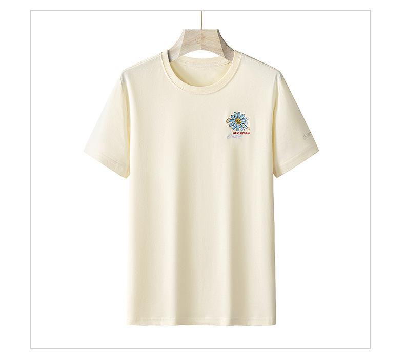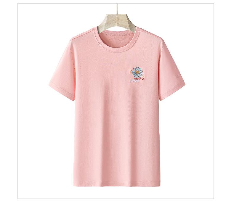 Camiseta de manga corta de verano para mujer, suelta, de color liso, con base bordada, deportiva, informal, de manga corta