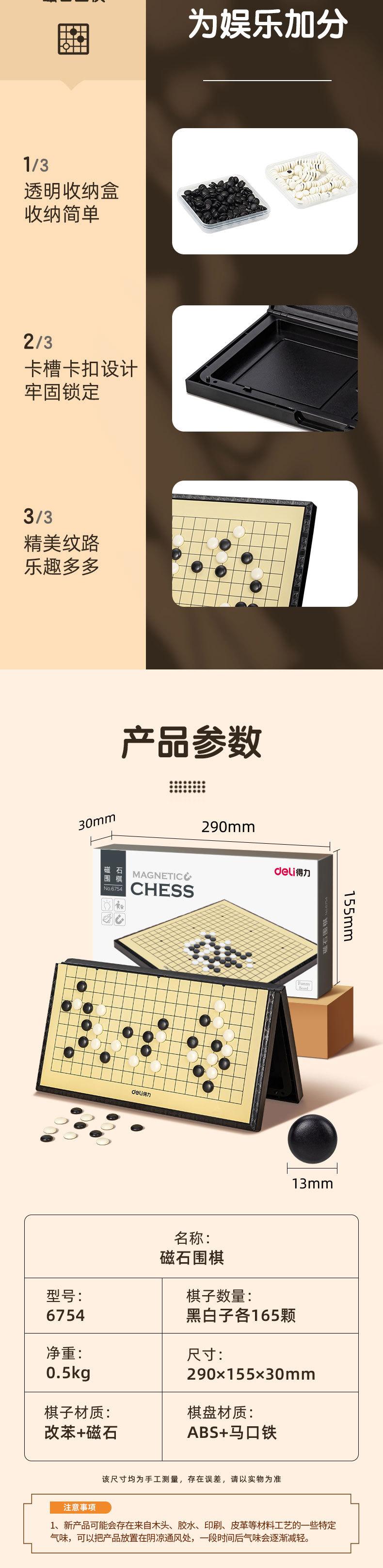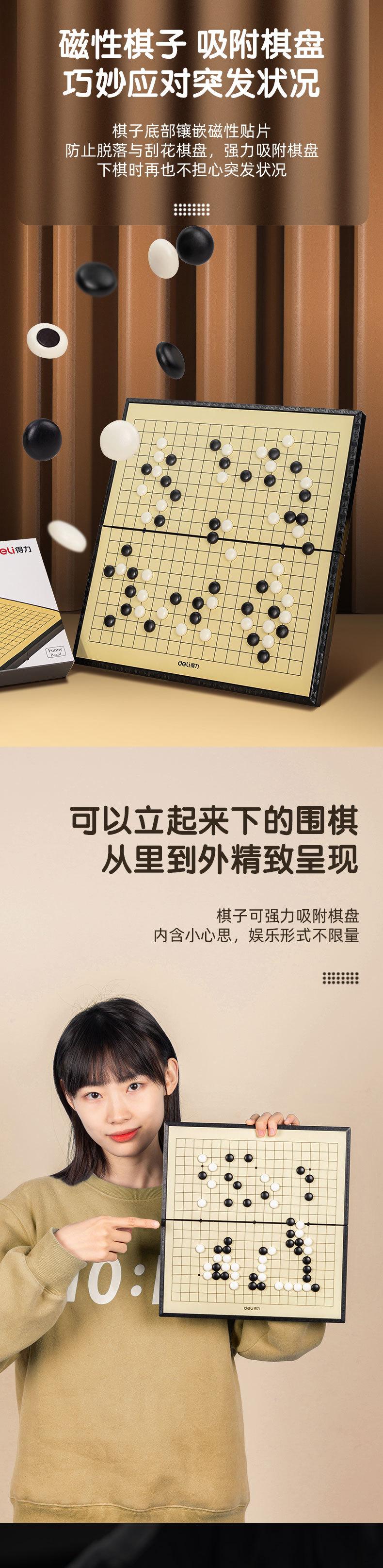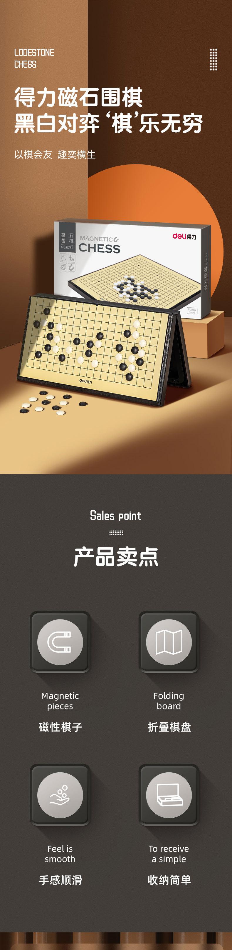 Deli 6754 Imán Go Juego para Principiantes para Niños Tablero de Ajedrez Magnético Backgammon Adulto Ajedrez Blanco y Negro Rompecabezas de Ajedrez