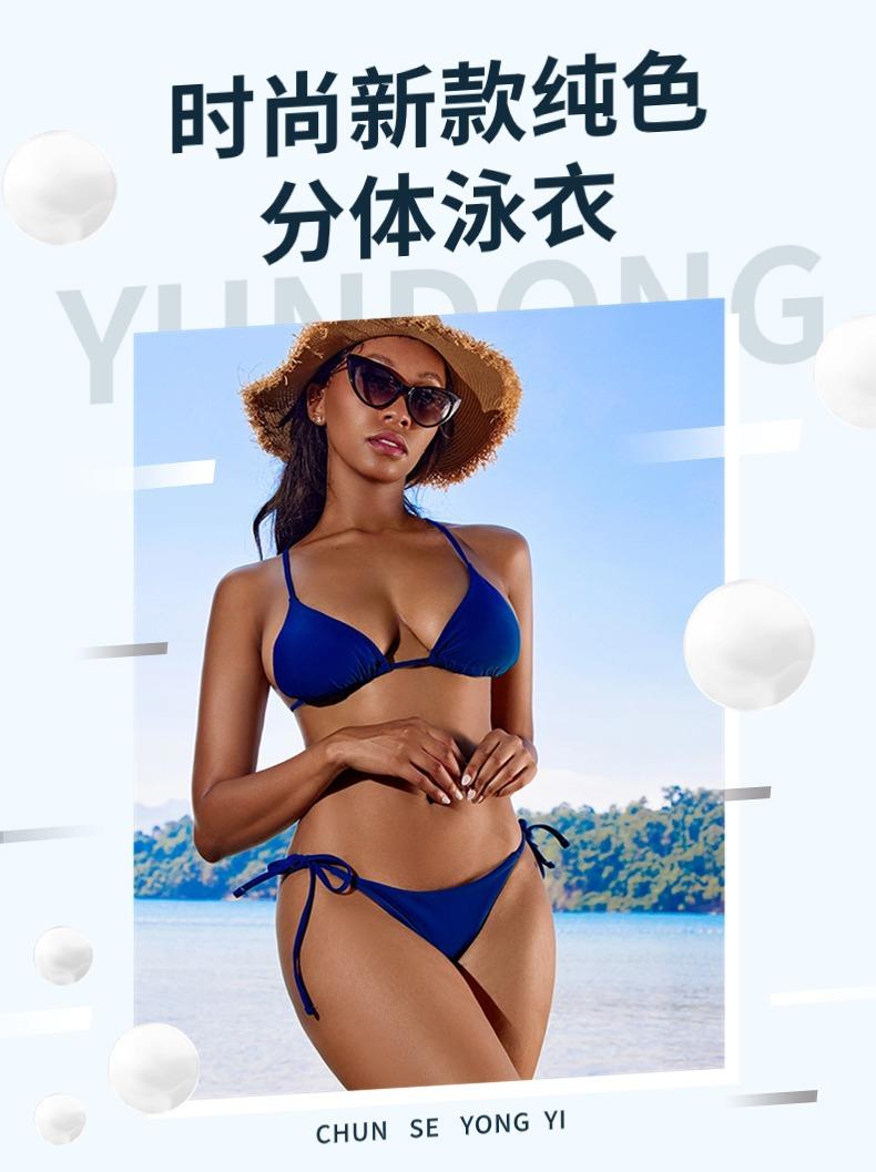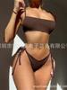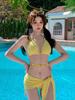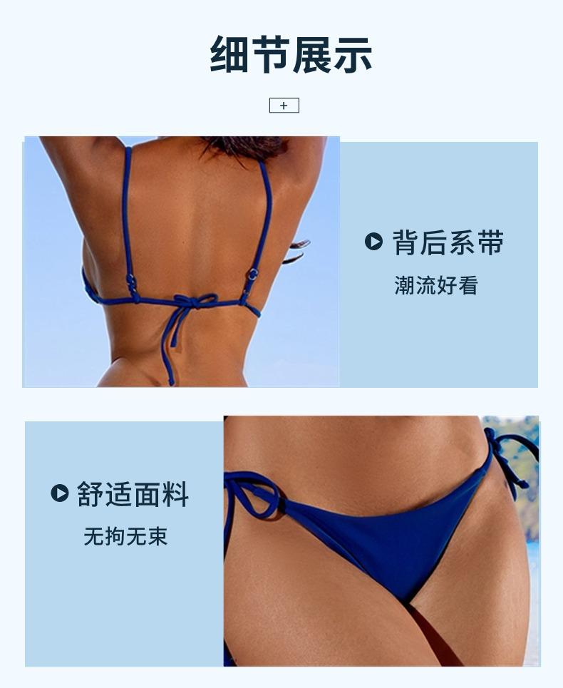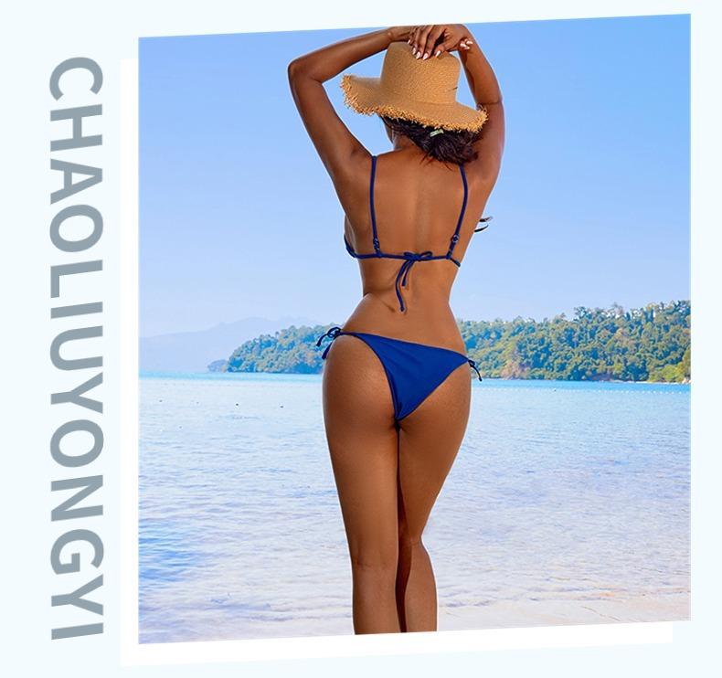 Traje de baño de tres piezas con borde cruzado, bikini sexy de tres puntos de color sólido para mujer, traje de baño sexy sin espalda con fruncido en el pecho para chica