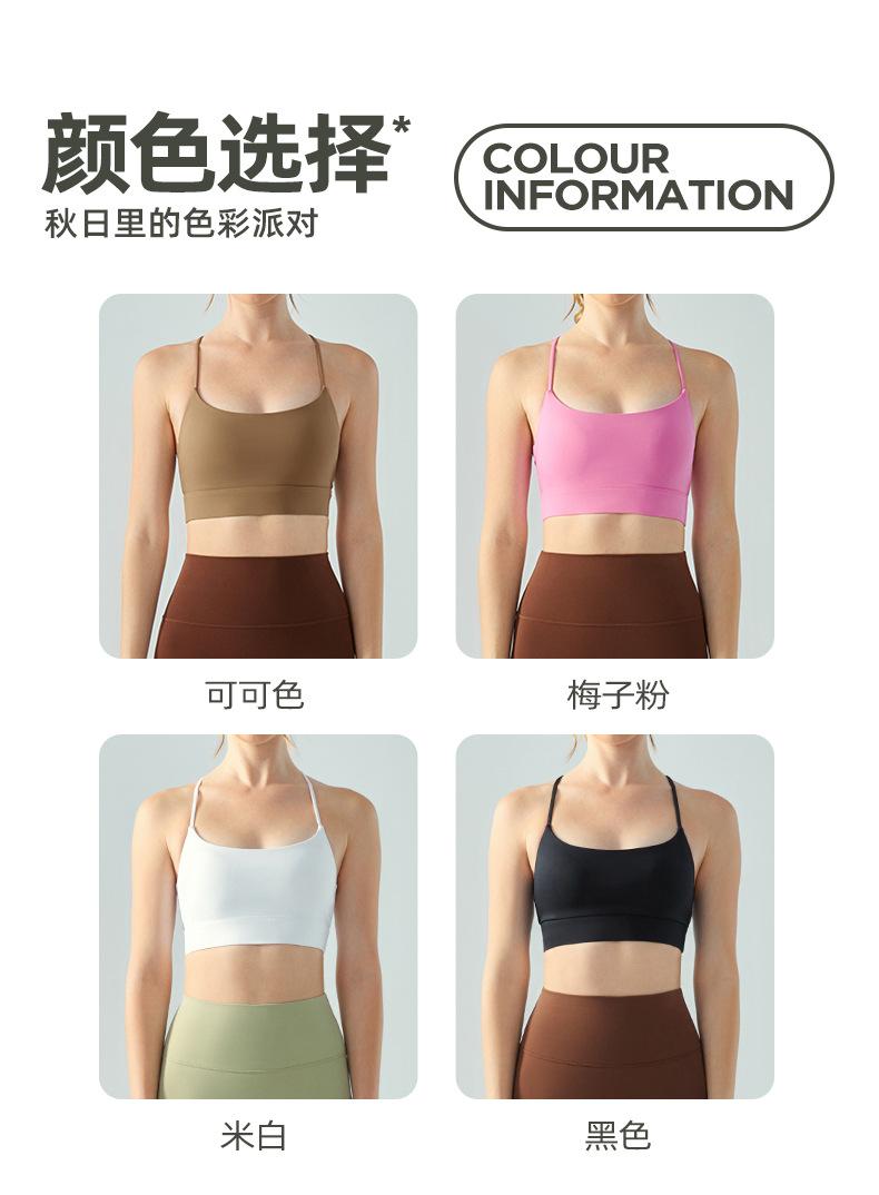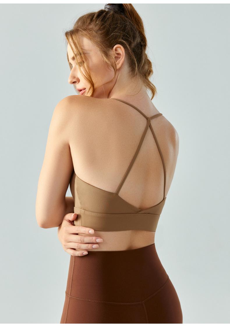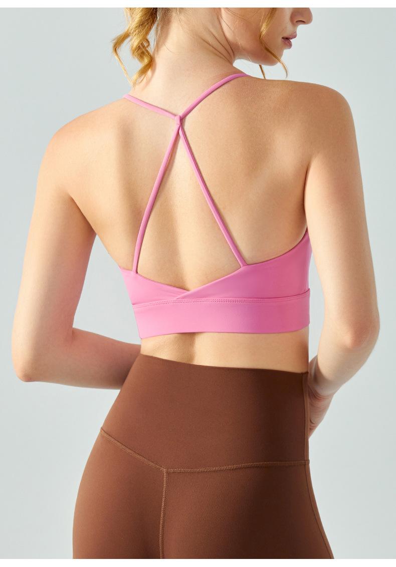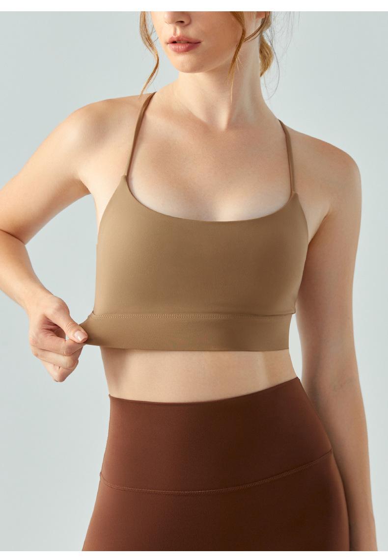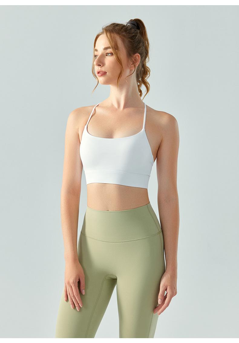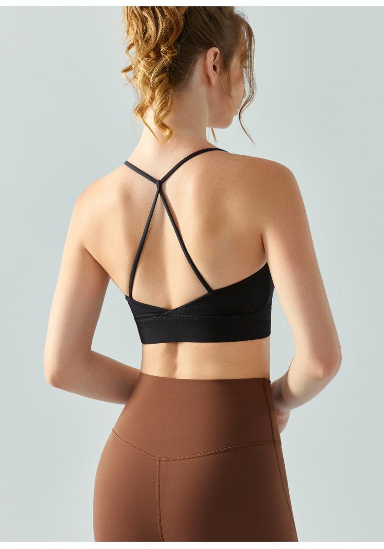 Chaleco de yoga para mujer, cinturón con almohadilla para el pecho, tirantes finos en forma de U, sujetador de fitness de color sólido, sujetador deportivo sexy con espalda descubierta