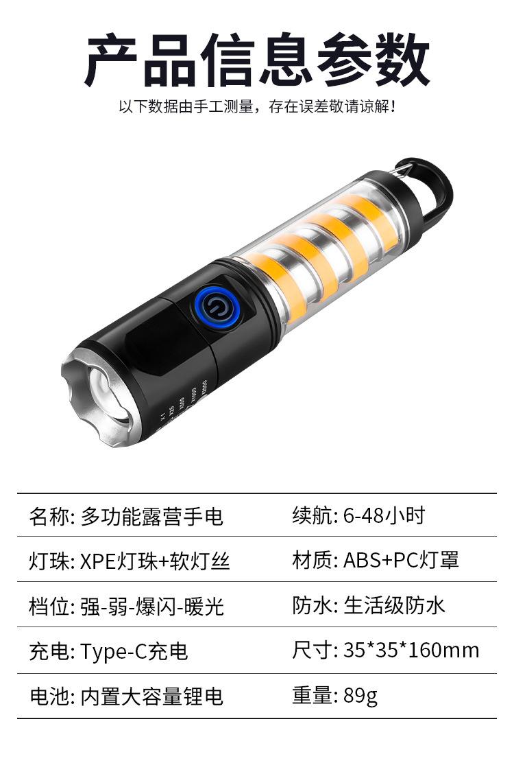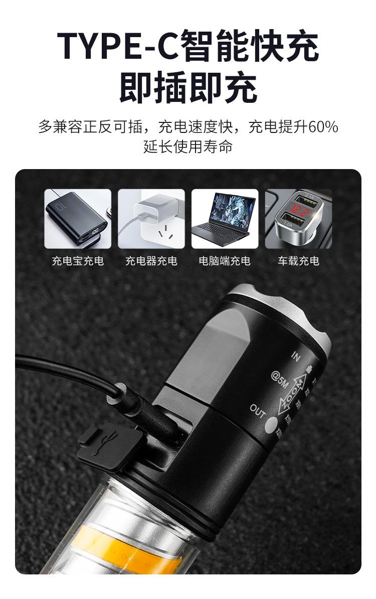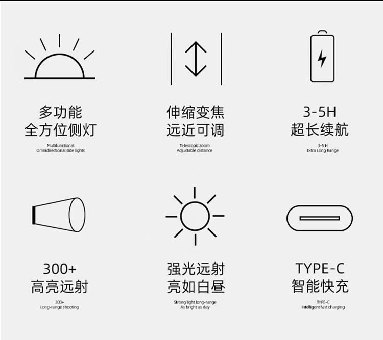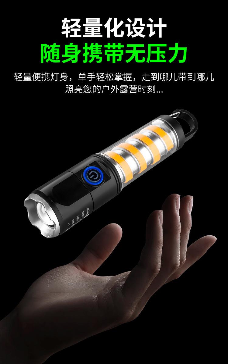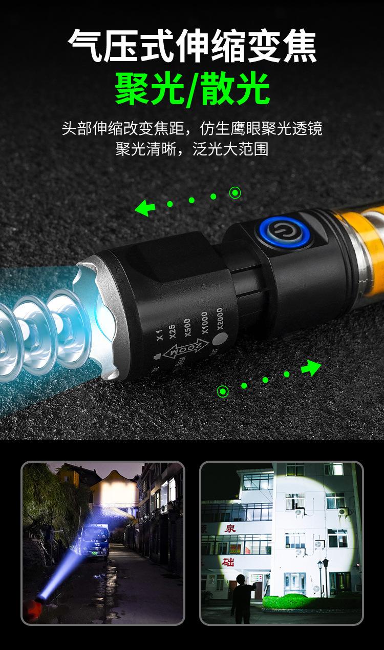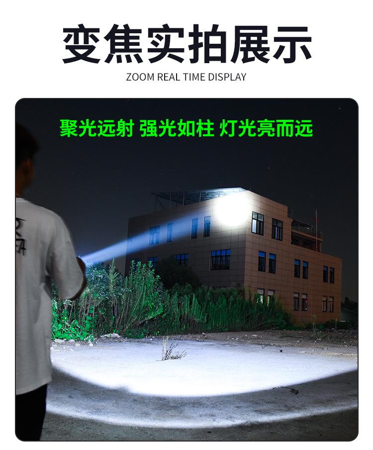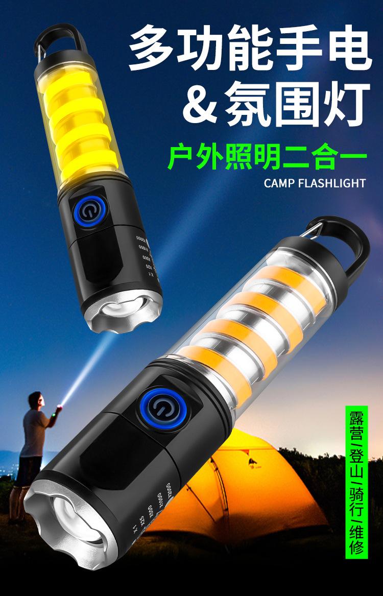 Linterna portátil LED multifunción especial para exteriores de largo alcance, carga USB, zoom telescópico, linterna de camping de luz fuerte
