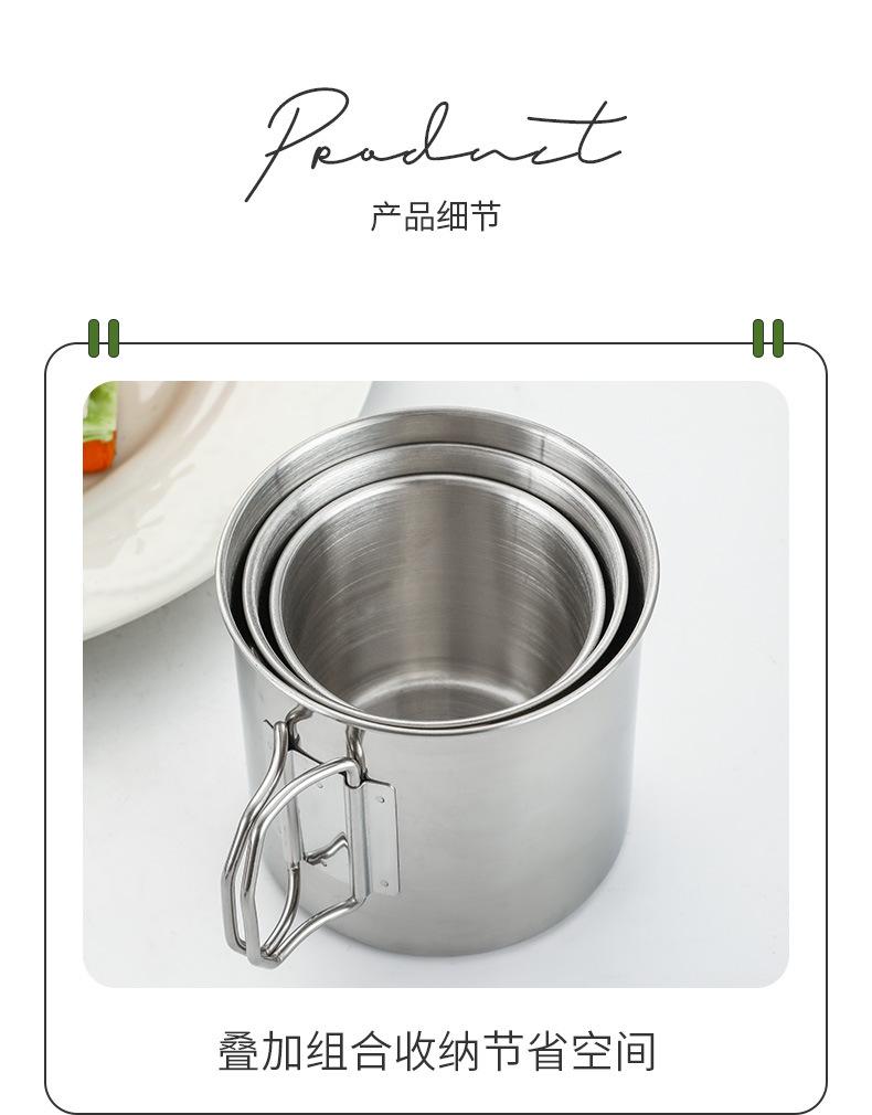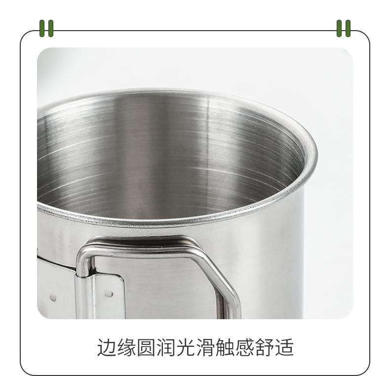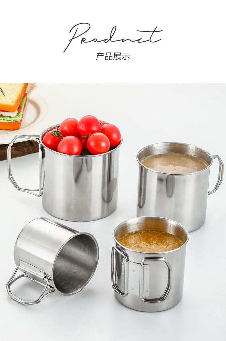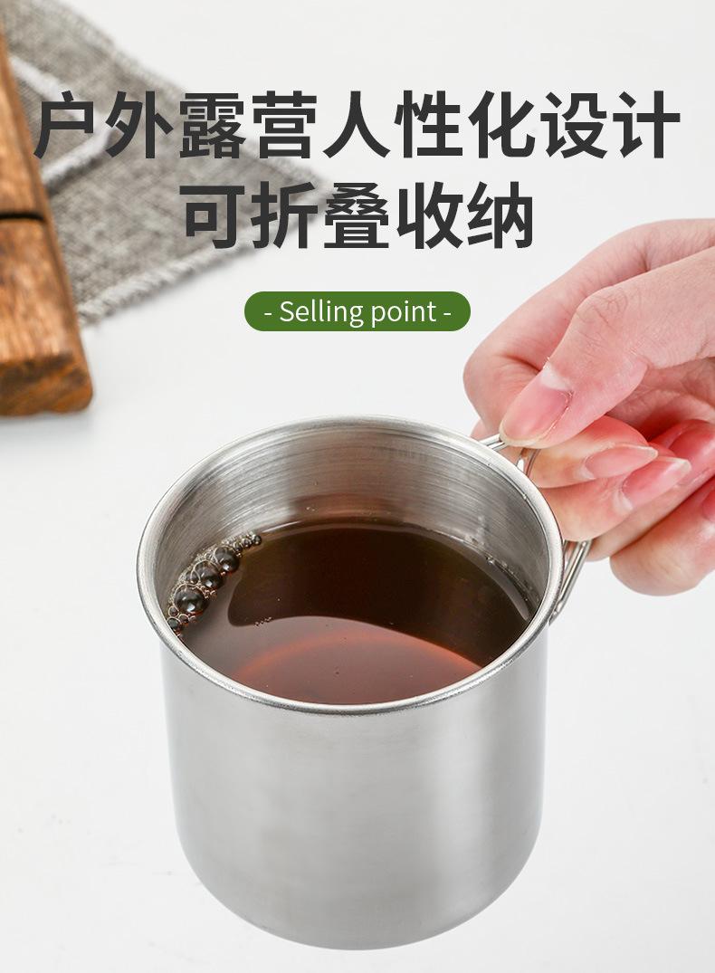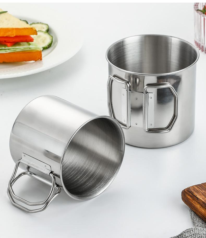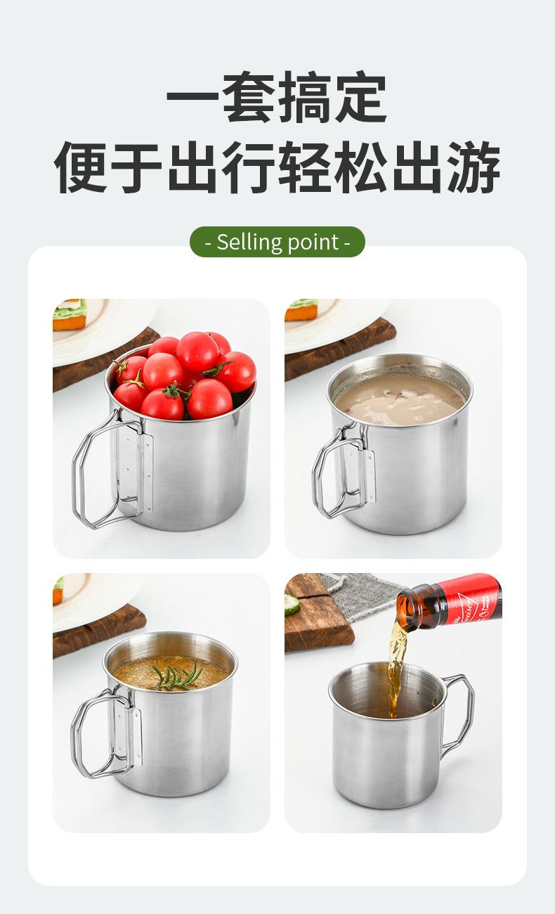 Taza de agua plegable de acero inoxidable 304 para acampar al aire libre, portátil, con asa plegable, para escalada y acampada.