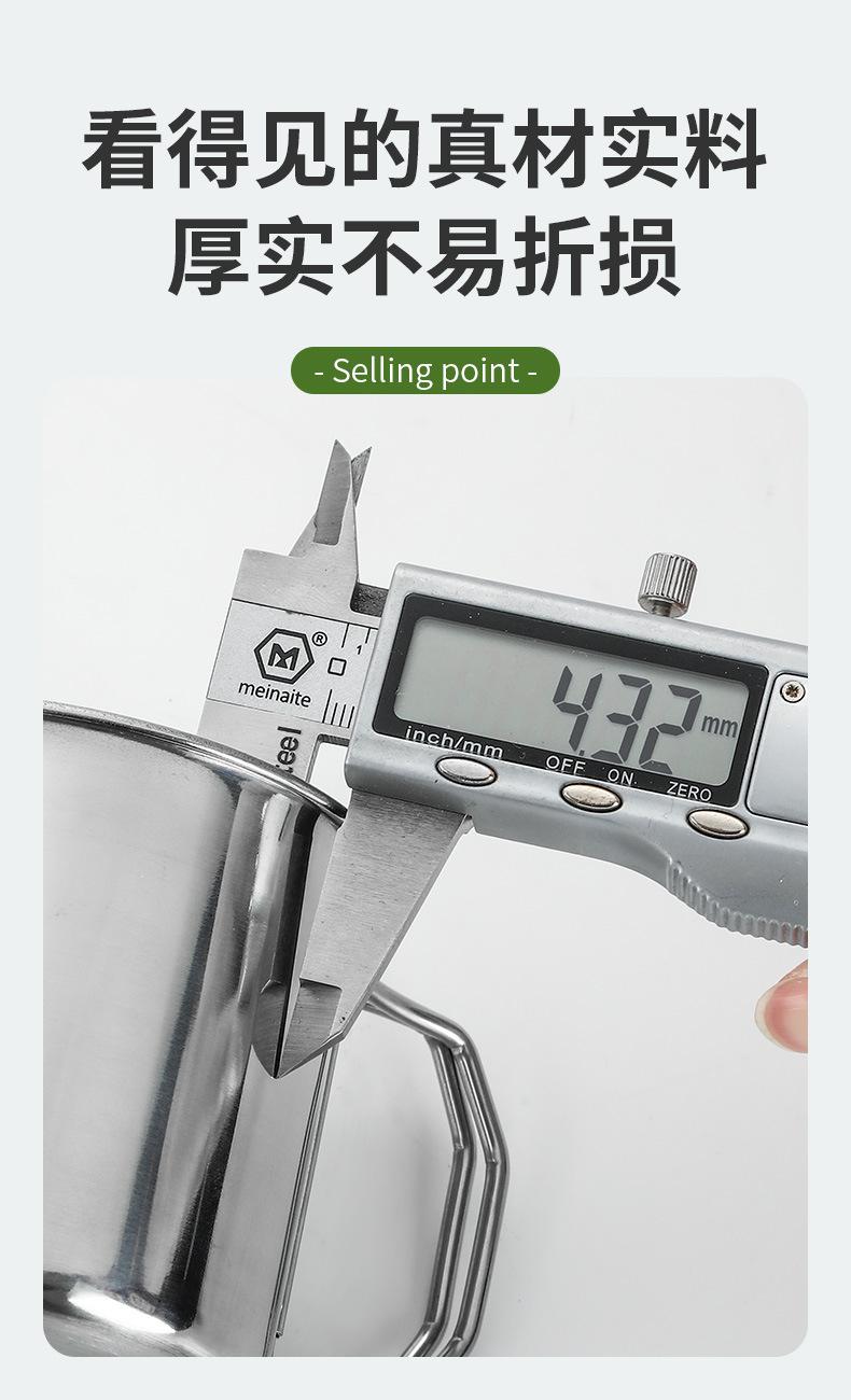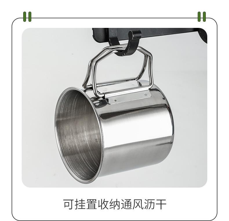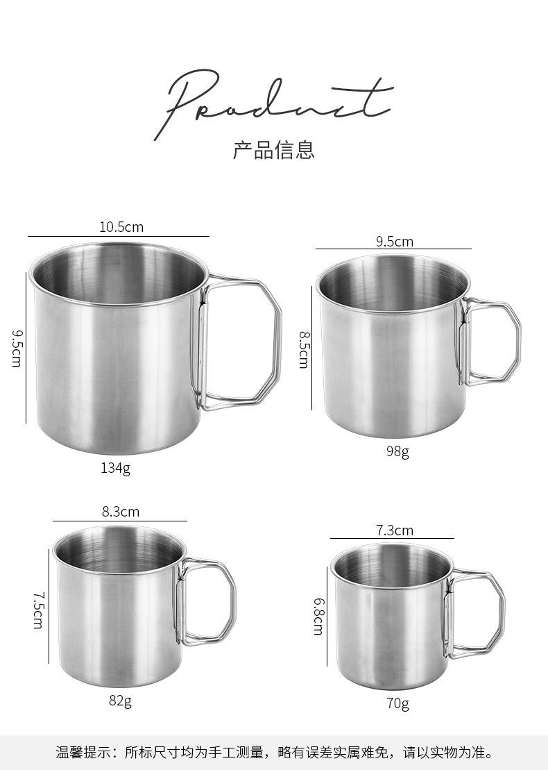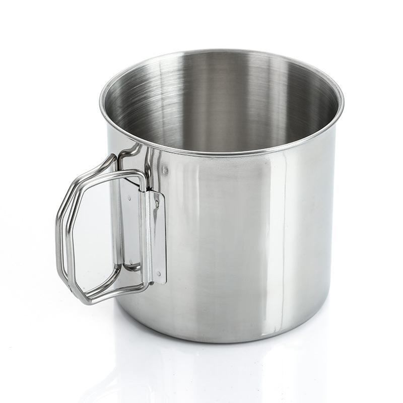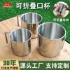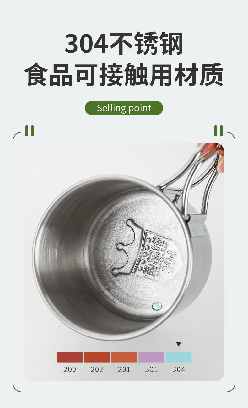 Taza de agua plegable de acero inoxidable 304 para acampar al aire libre, portátil, con asa plegable, para escalada y acampada.