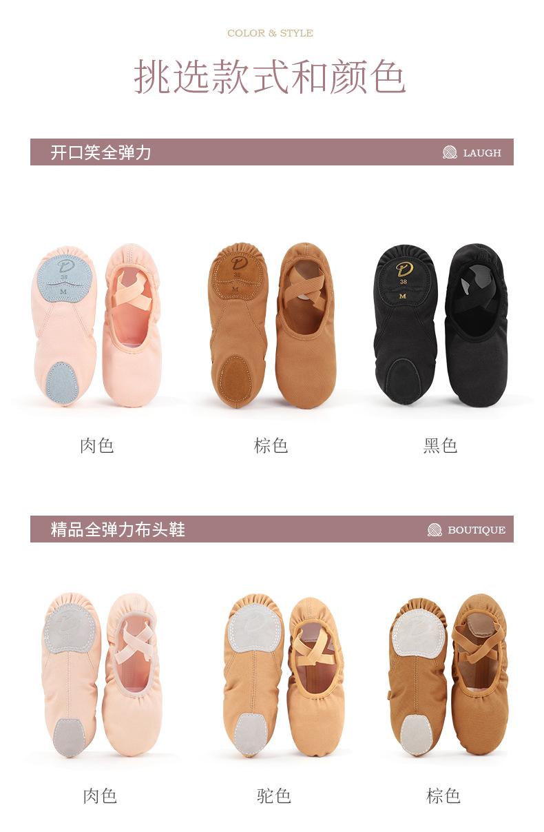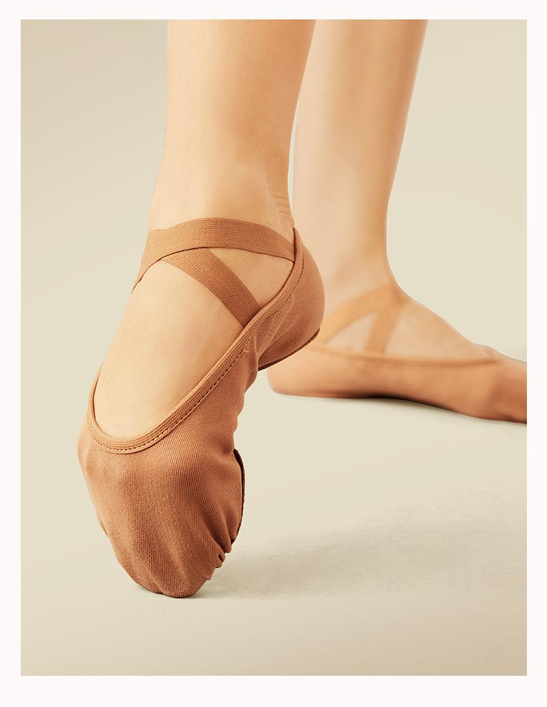 Zapatos de baile de tela elástica zapatos de suela blanda profesionales para mujer zapatos de ejercicio zapatos de ballet camel para adulto zapatos de baile para niños