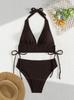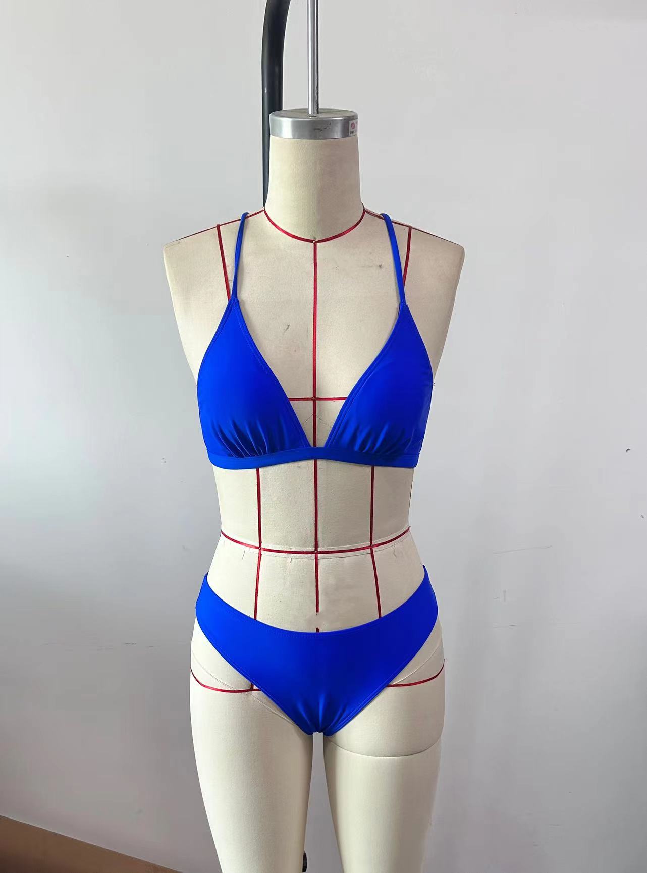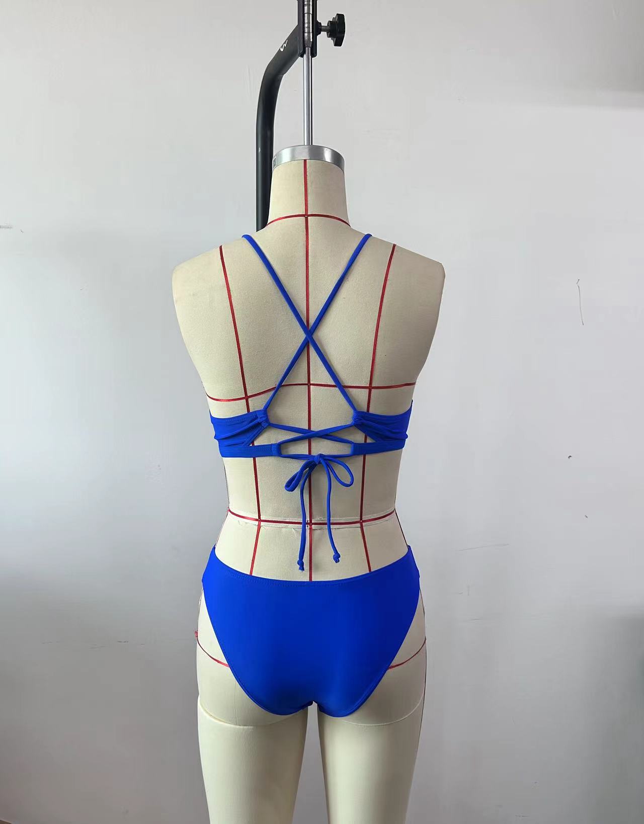 Traje de Baño Bikini Nuevo Europeo y Americano Comercio Exterior Transfronterizo Color Sólido Dividido Amazon Vacaciones en la Playa Traje de Baño Moderno y Sexy