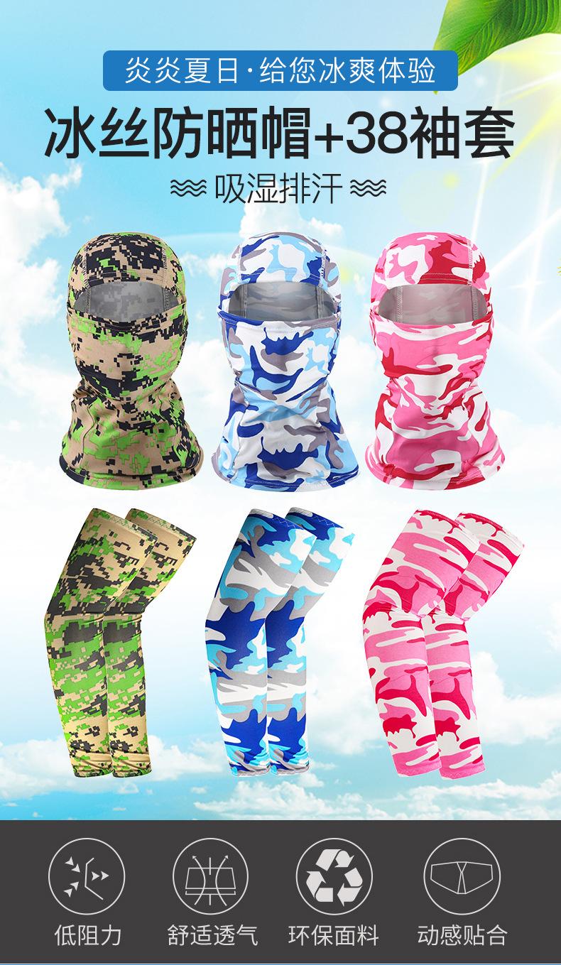 Nuevo casco de camuflaje para exteriores, máscara para montar a caballo, protección solar de seda helada, combinación de mangas transpirables y absorbentes del sudor.