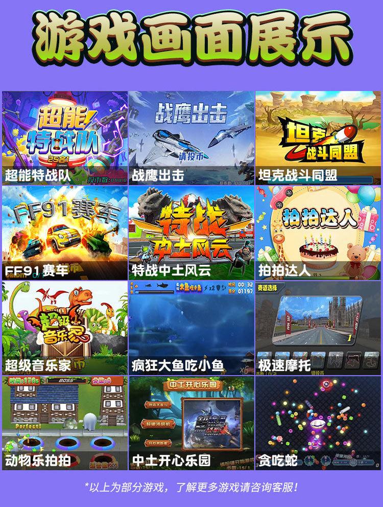 Single Gun Machine, Double bolt, Super Musician, Big Moto, Hit the gopher, Double Ultraman, Double Racing, Sin...