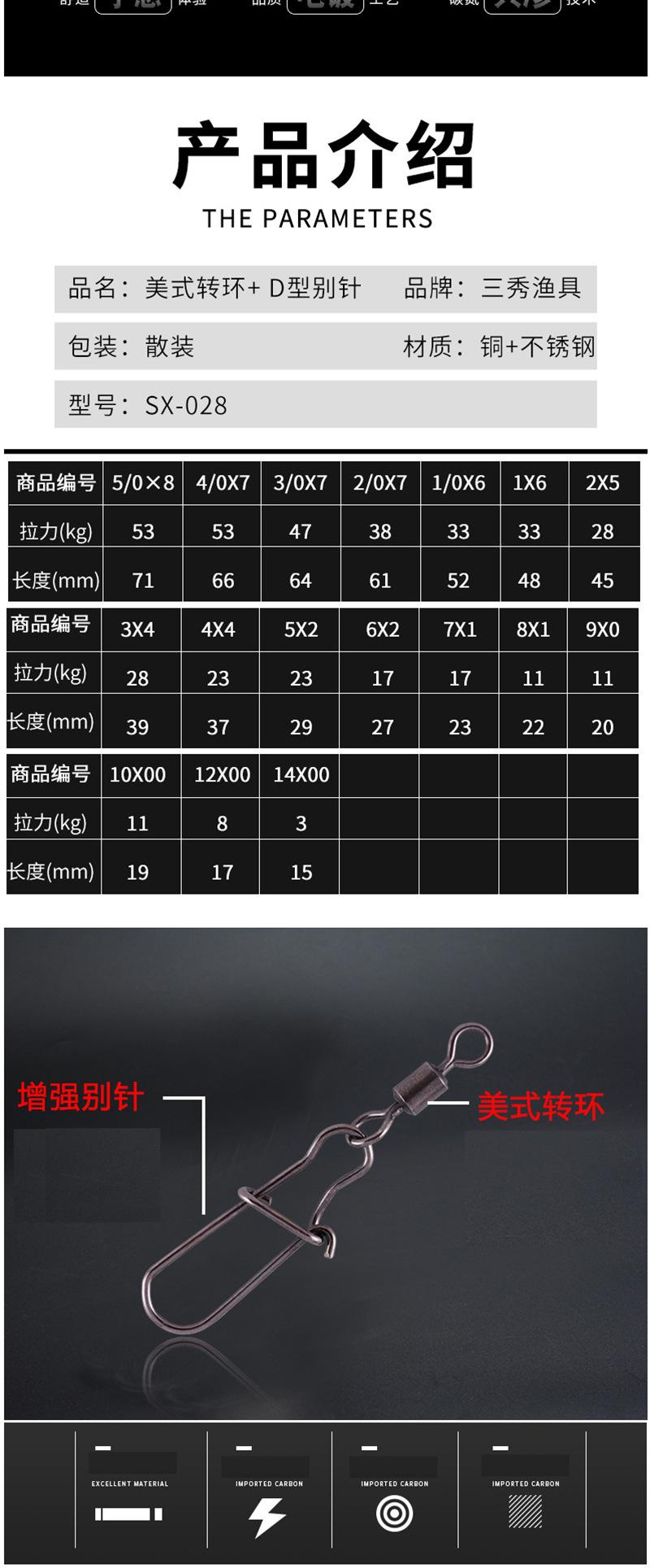 Fabricantes mayoristas de accesorios para aparejos de pesca con conector de ocho anillos con pasador reforzado tipo D y eslabón giratorio americano