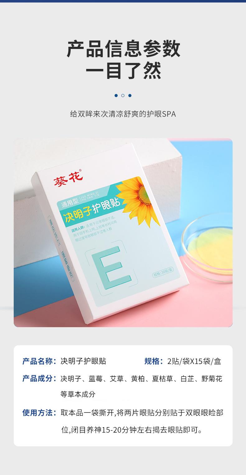 Parche ocular de aplicación fría con semillas de casia de girasol, parche ocular universal para el hogar para aliviar la fatiga ocular, parche ocular hidratante con luteína para los ojos.