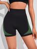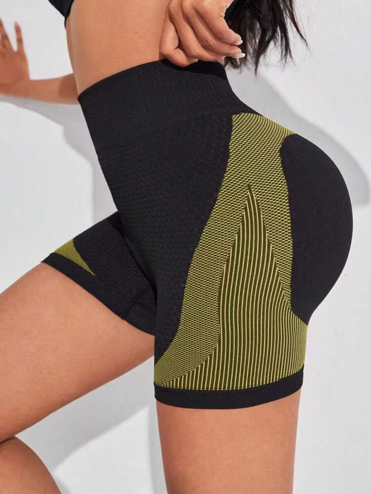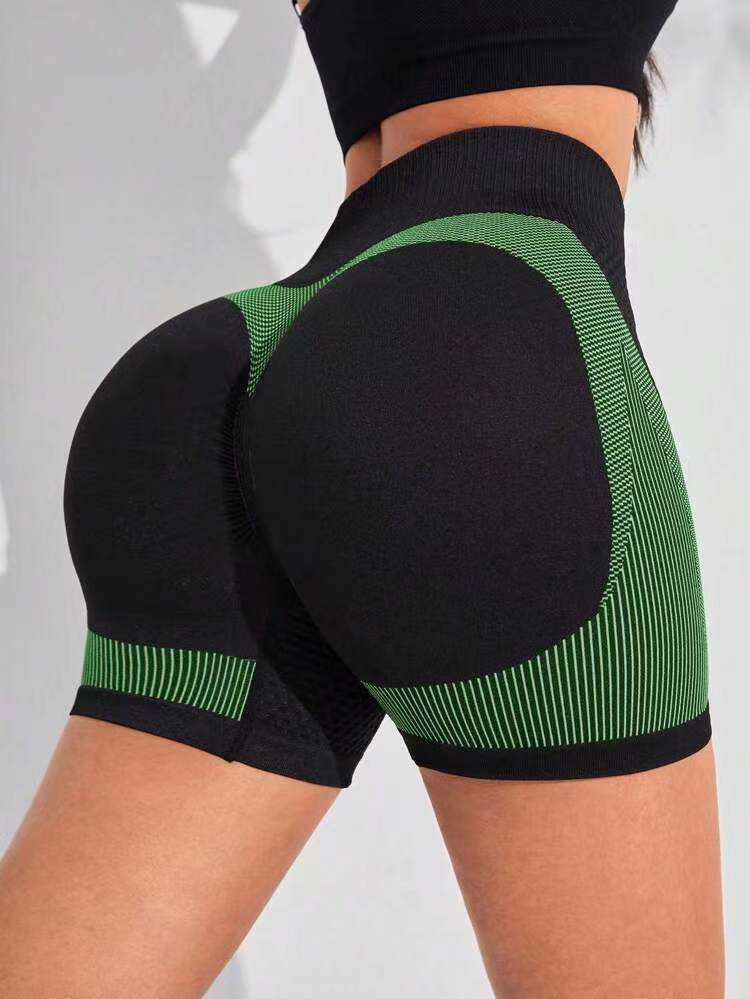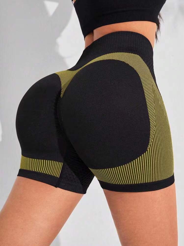 Pantalones cortos de yoga sin costuras para mujer, deportivos, de cintura alta, con realce de cadera, de tres puntos, color melocotón