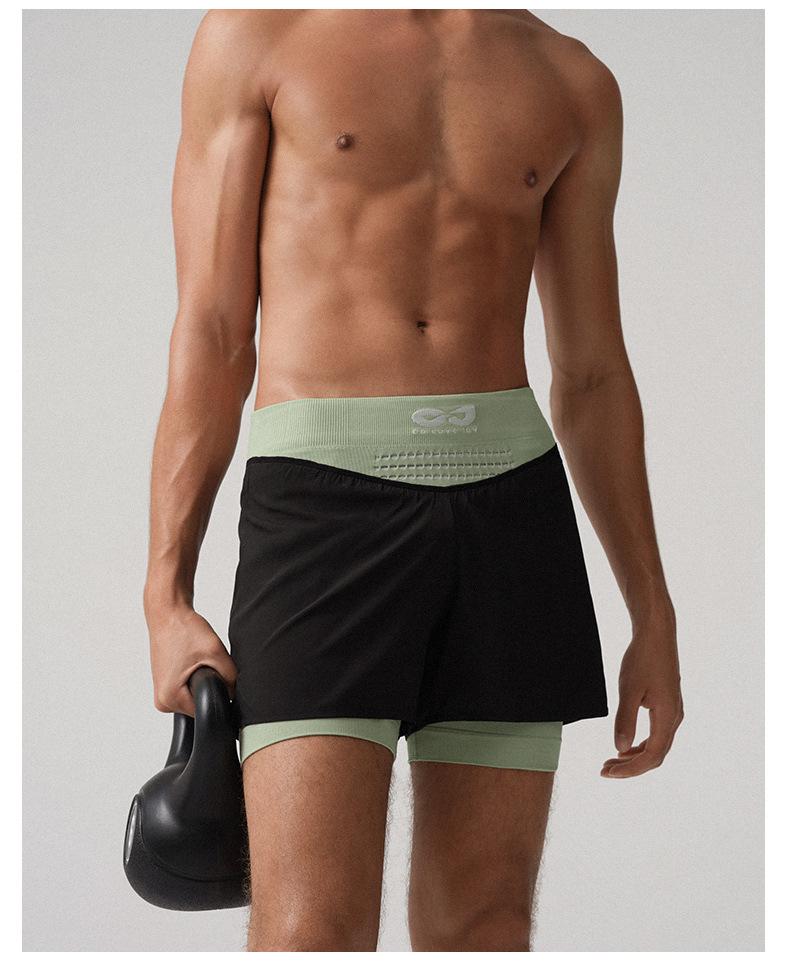 Pantalones cortos deportivos para hombre, de fitness, moldeador corporal, para montar a caballo, yoga, transpirables, absorbentes del sudor, sin costuras, de secado rápido, de doble capa, JS04