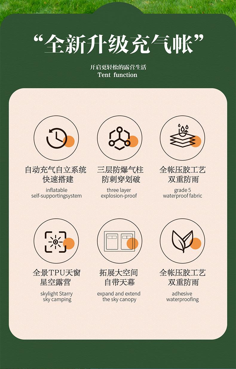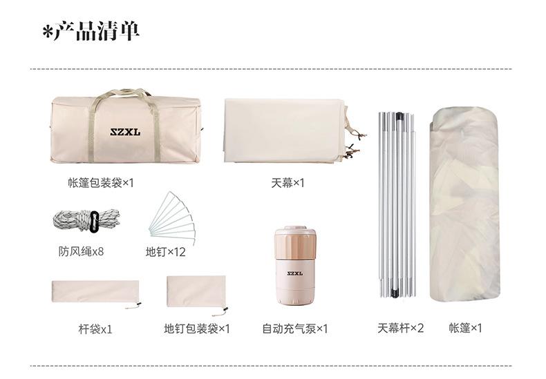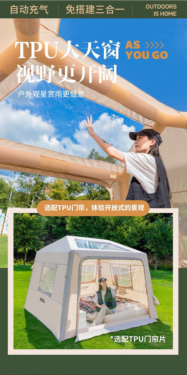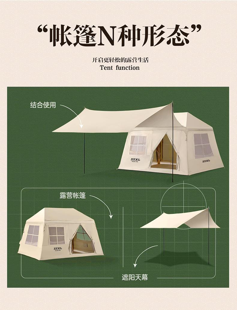 Tres Burritos Carpa Inflable de Cielo para Exterior a Prueba de Viento y Lluvia Portátil de Una Habitación y un Salón Equipo para Camping Picnic