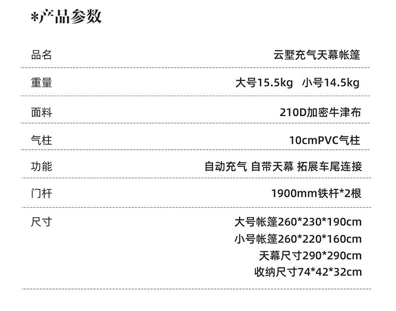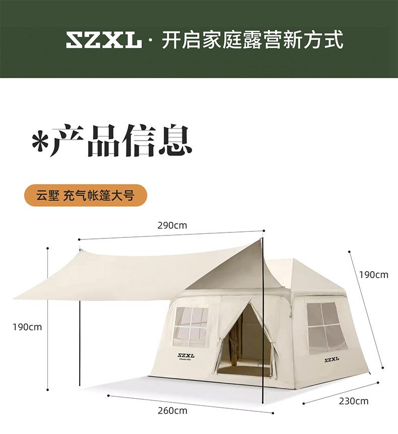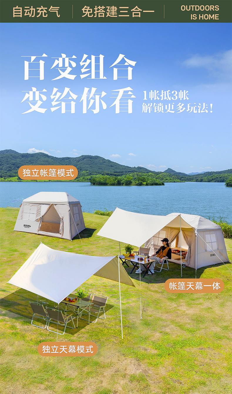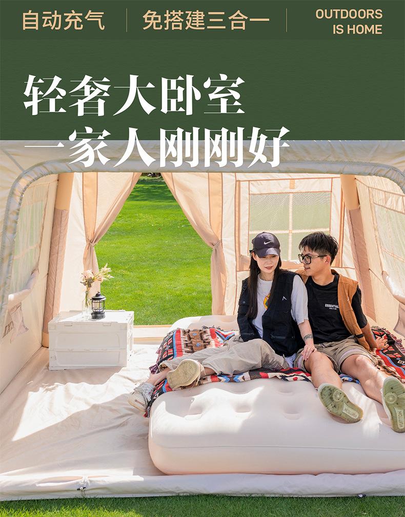 Tres Burritos Carpa Inflable de Cielo para Exterior a Prueba de Viento y Lluvia Portátil de Una Habitación y un Salón Equipo para Camping Picnic