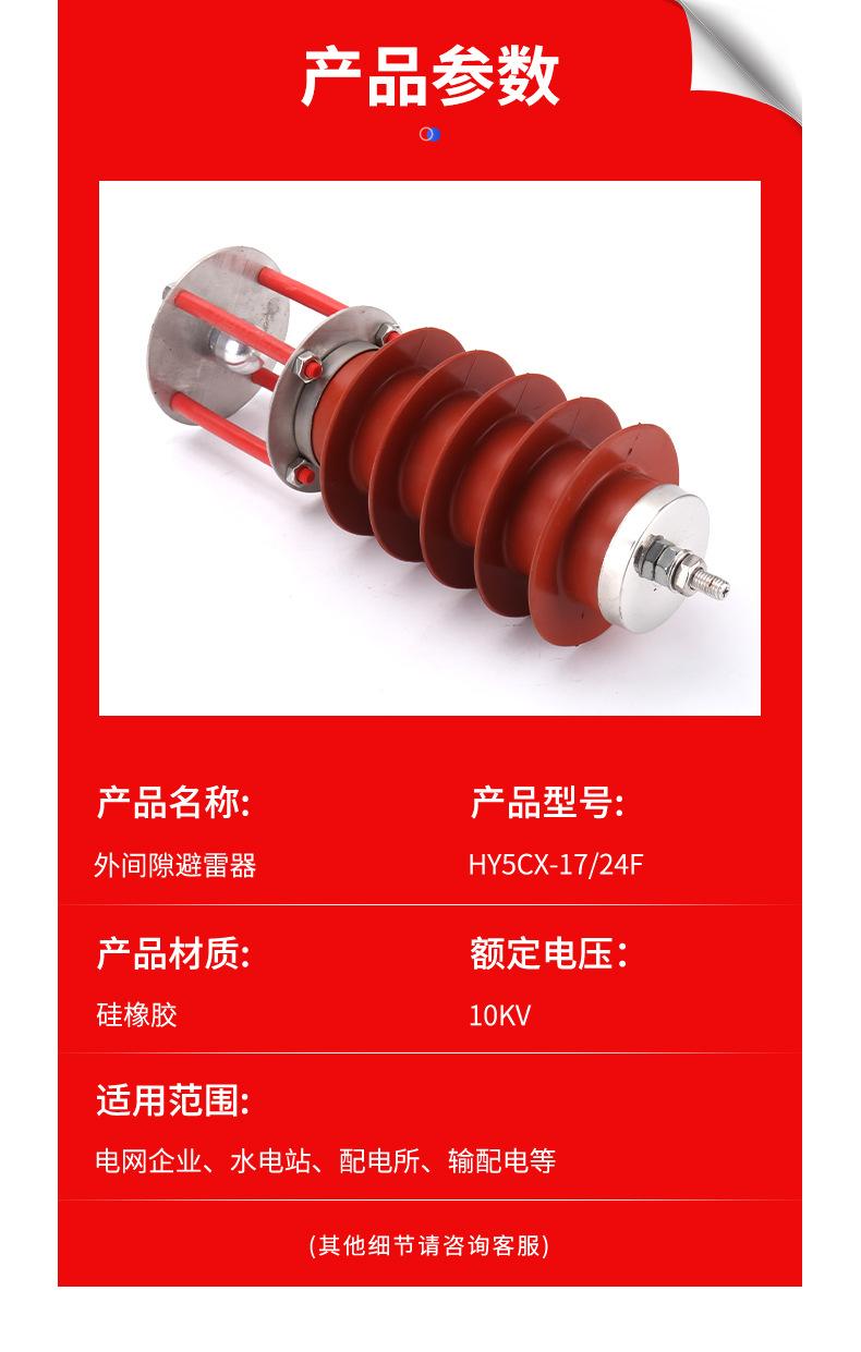 Pararrayos de óxido de zinc de 10 kV con bola de descarga externa de alto voltaje HY5CX-17/24F
