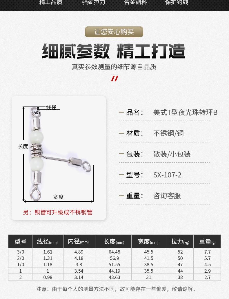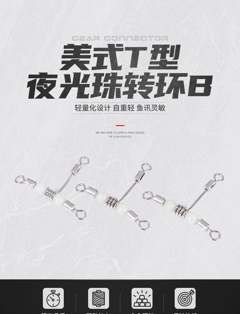 Fabricantes de aparejos de pesca, eslabón giratorio luminoso tipo T americano, conector giratorio de tracción tipo B, accesorios pequeños