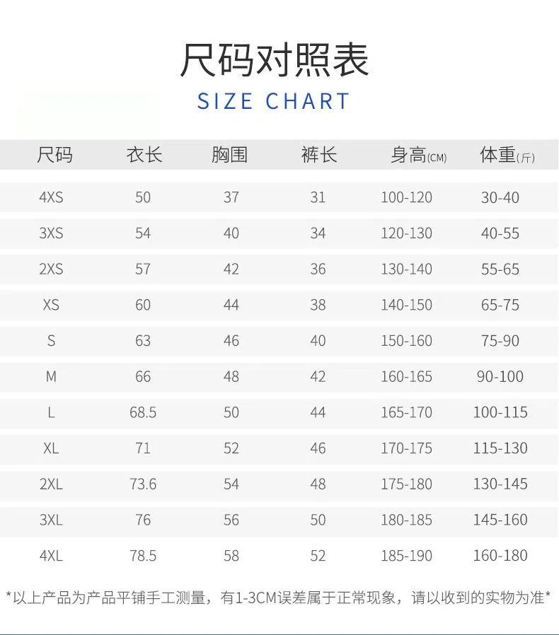 4XS, 3XS, 2XS, XS, S, M, L, XL, XXL, 3XL, 4XL