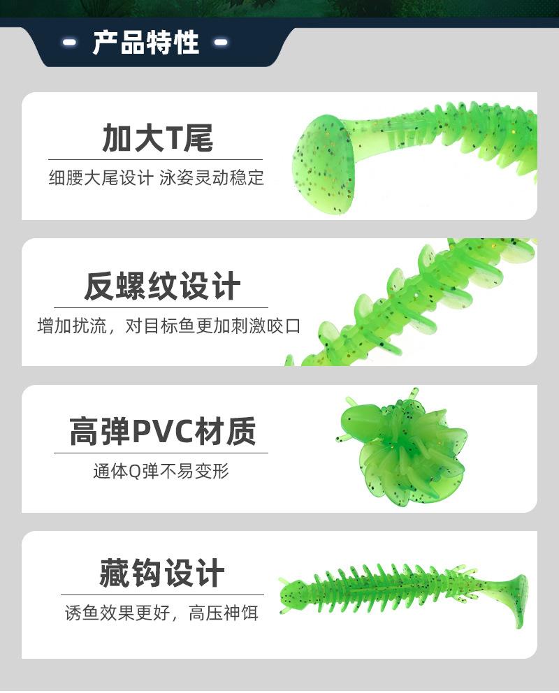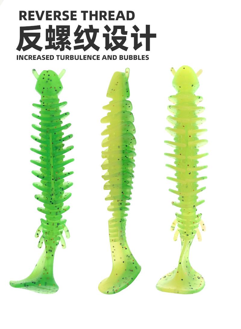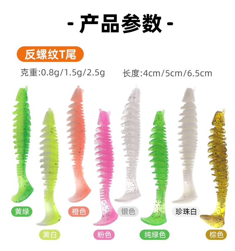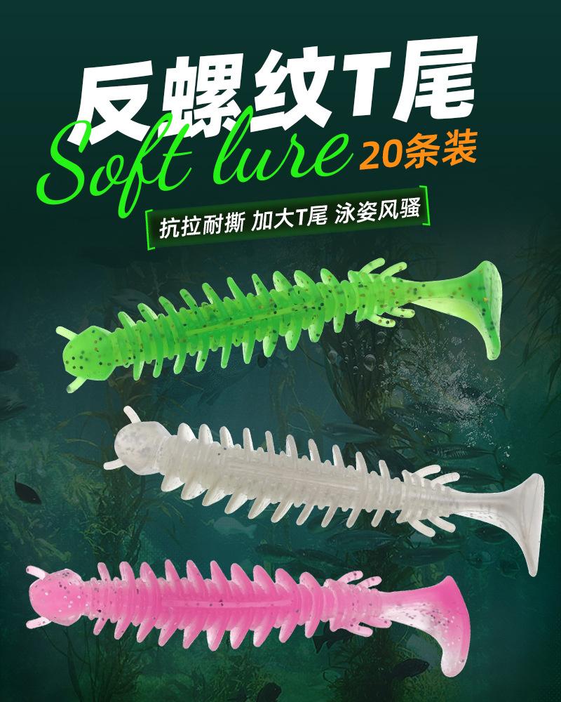 Nuevo cebo falso con cola en T y hilo invertido, paquete de 20, pesca explosiva, hilo biónico, fabricantes de peces con cola en T, cebo falso al por mayor.