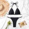 2024 Amazon Mujer Sexy Bikini Set de Piezas Traje de Baño de Tirante Delgado de Hombro Color Sólido Traje de Baño Traje de Baño Triángulo