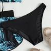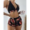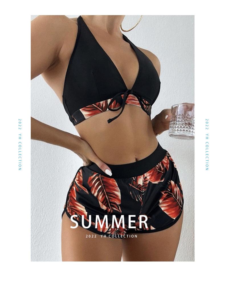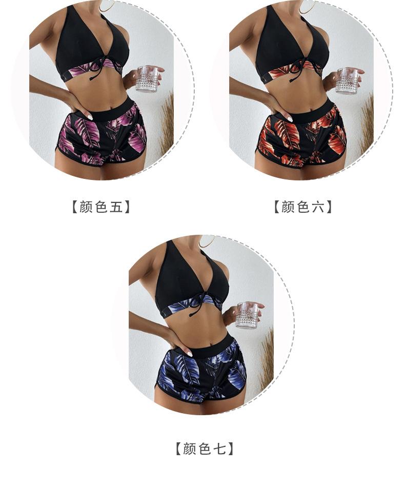 Traje de Baño Transfronterizo Europeo y Americano Nuevo Bikini Estampado de Hojas Dividido Traje de Baño Shorts para Mujer Bikini Set de Tres Piezas