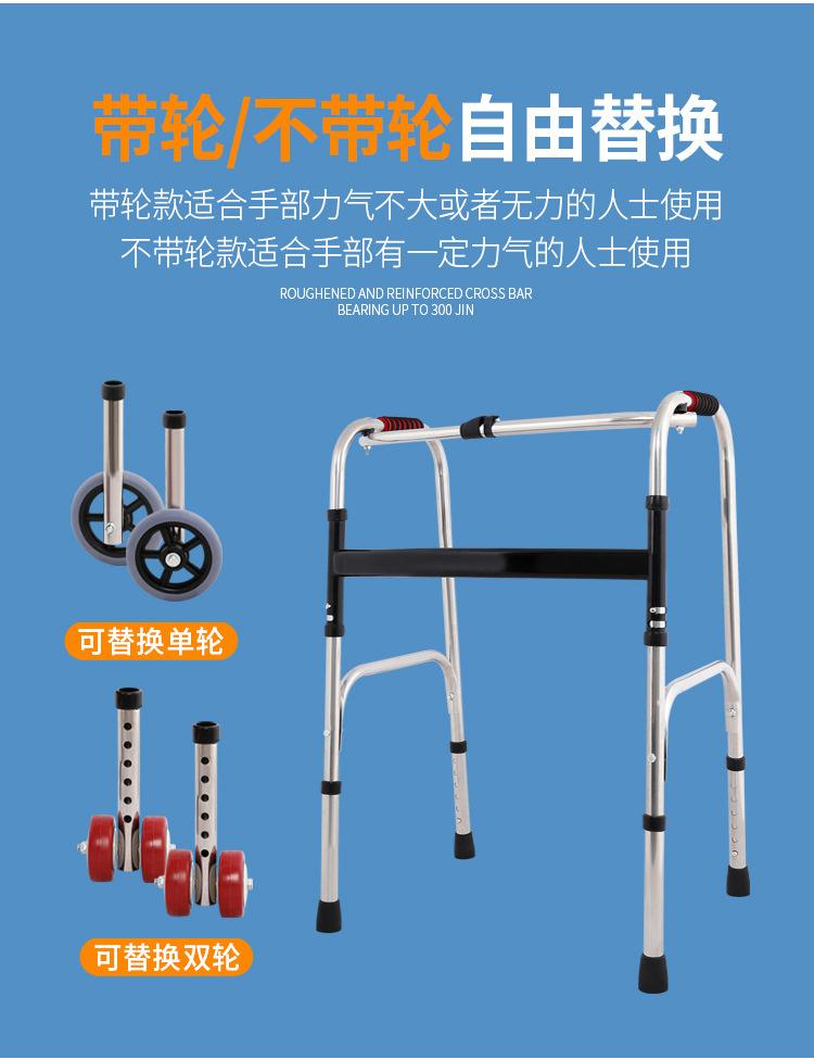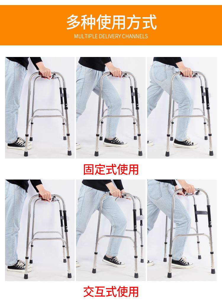 Acero Inoxidable Ayuda para Caminar para Ancianos Plegable Muletas de Rehabilitación Andador Marco de Soporte Auxiliar Antideslizante de Cuatro Patas