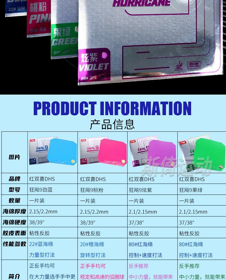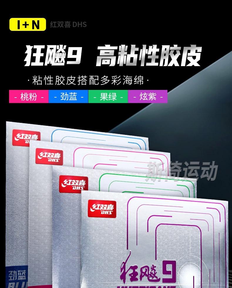 Goma de Raqueta de Tenis de Mesa Auténtica Roja Doble Felicidad Crazy 9 Goma Profesional Tenis de Mesa Alta Elástica Esponja Azul Crazy 9 Colorida
