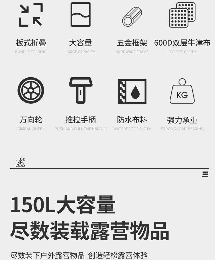 Carrito de Camping al Aire Libre Carro de Picnic para Camping Carro de Camping Carro Plegable Portátil Excursiones Remolque de Camping