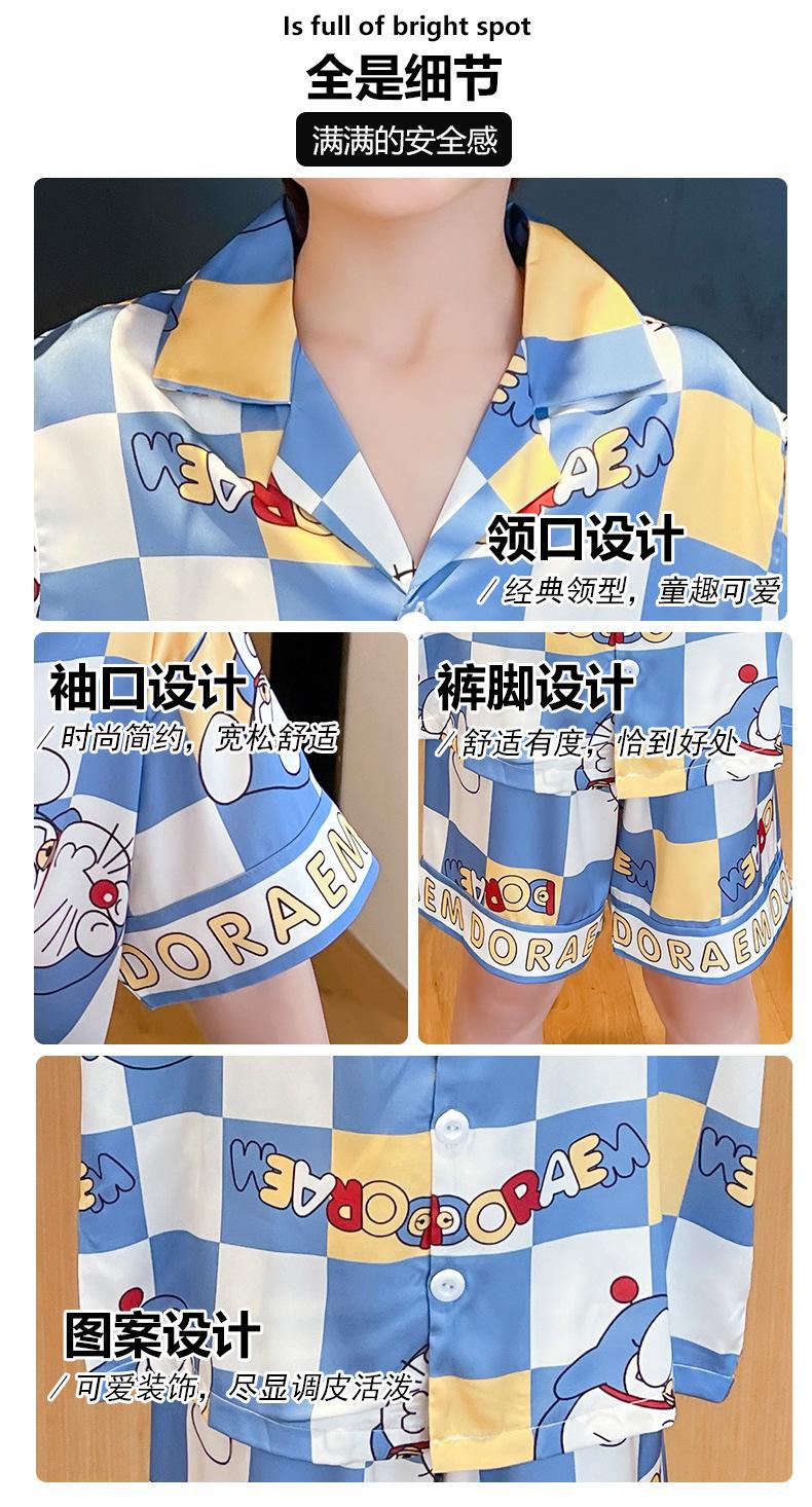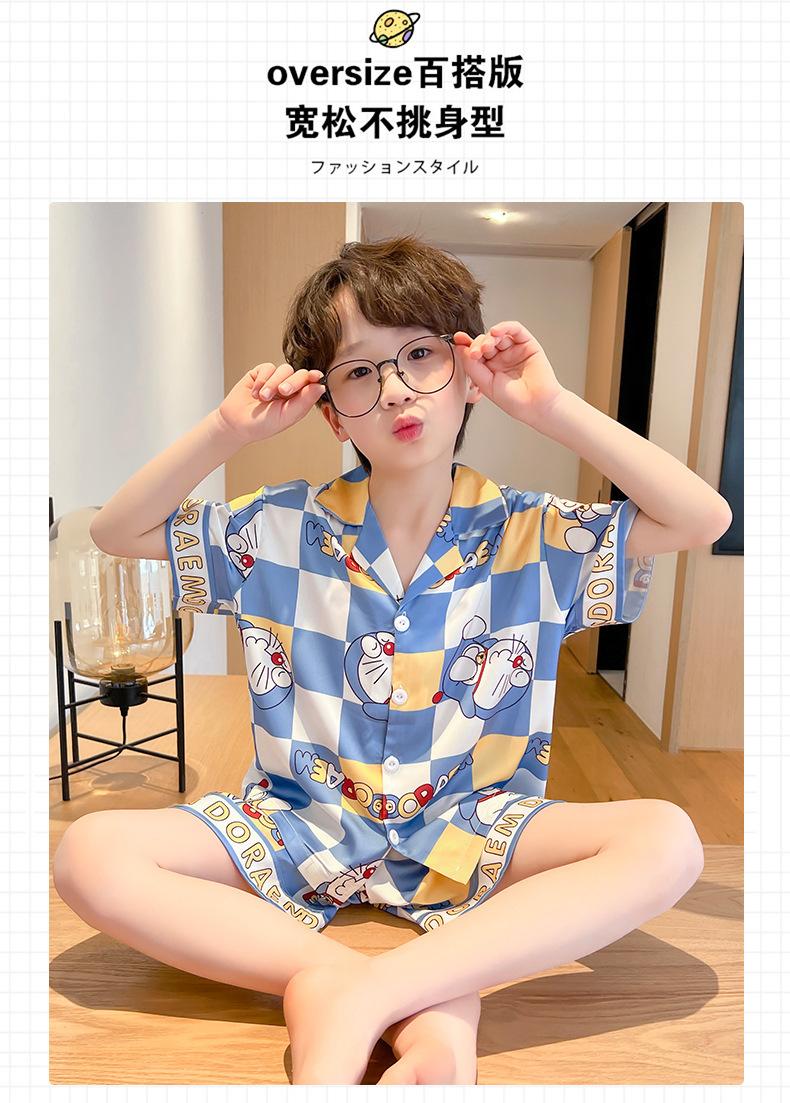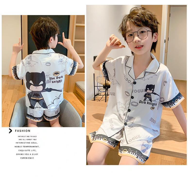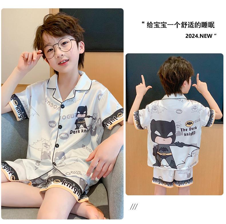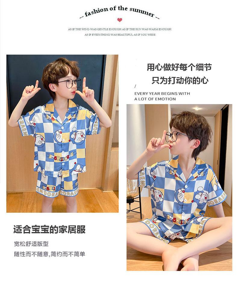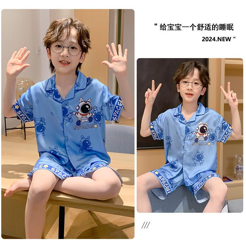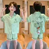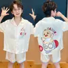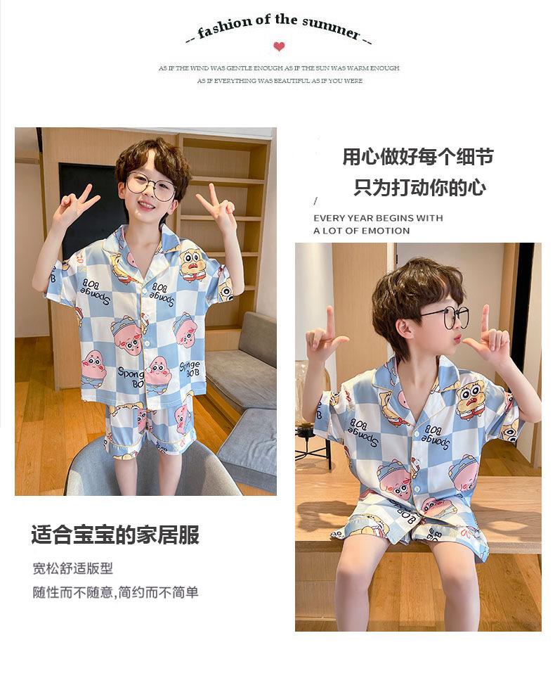 Pijamas de seda de hielo para niños, cárdigan de verano, pantalones cortos de manga corta, ropa de casa cómoda y bonita con dibujos animados para niños y niñas