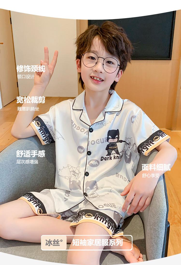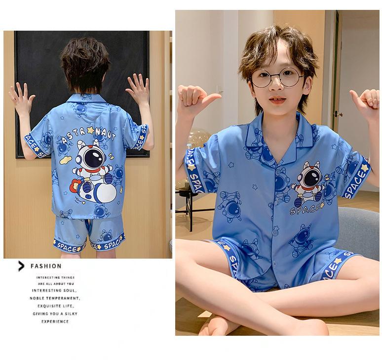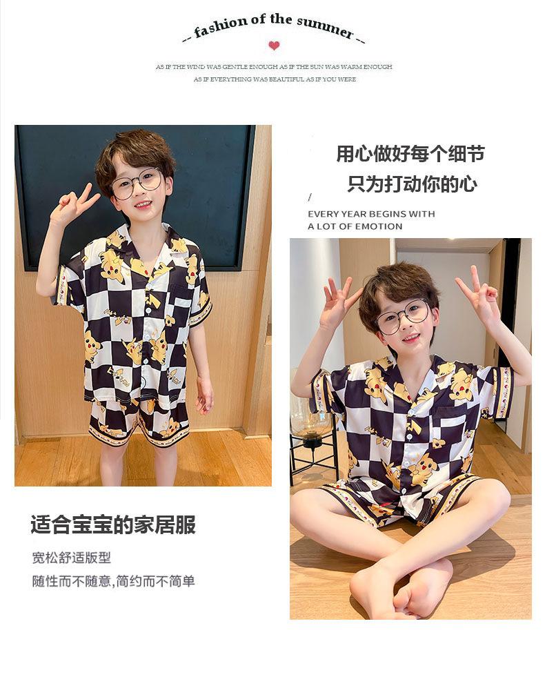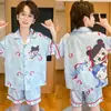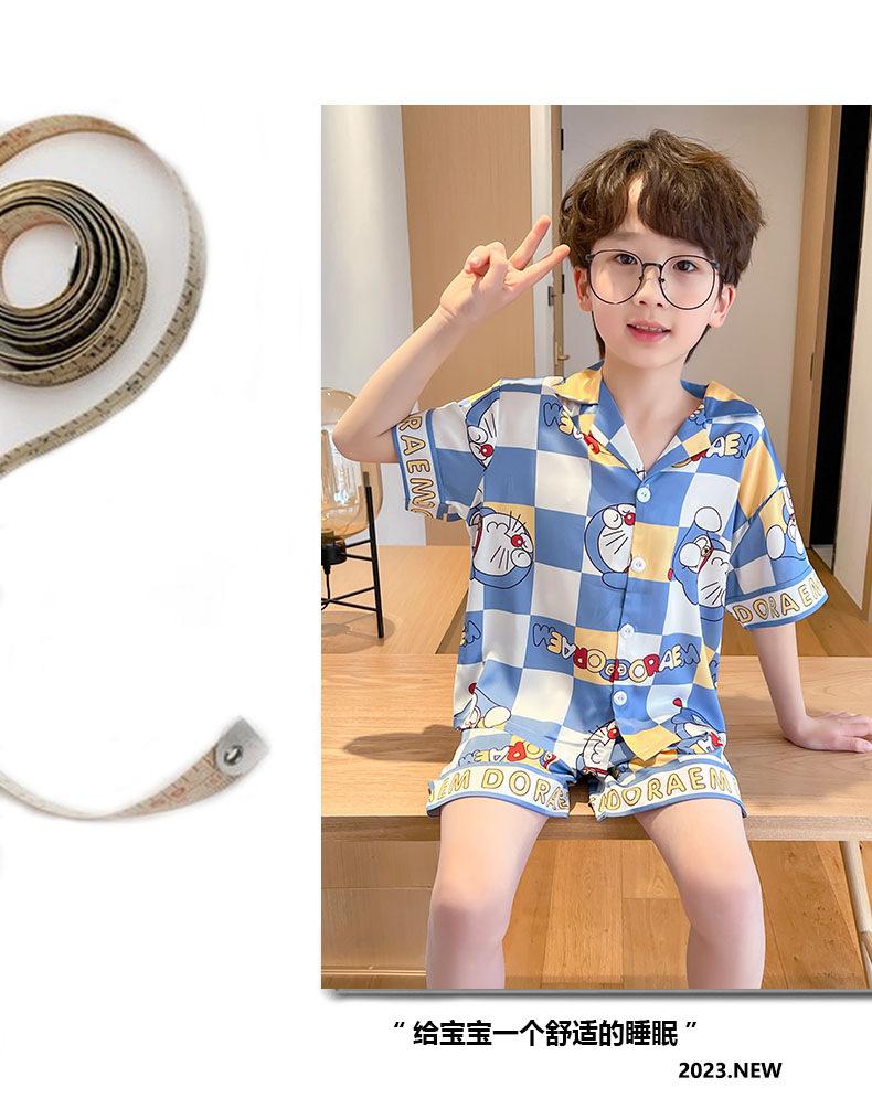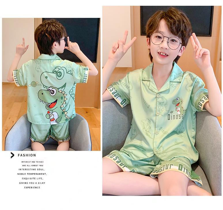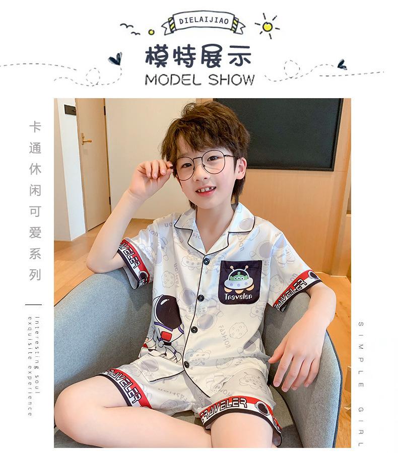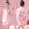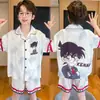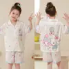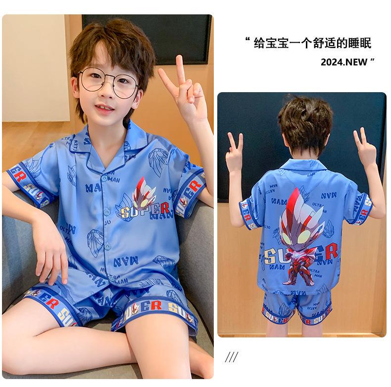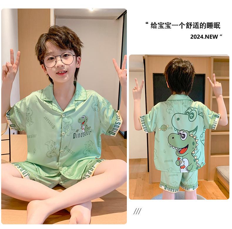 Pijamas de seda de hielo para niños, cárdigan de verano, pantalones cortos de manga corta, ropa de casa cómoda y bonita con dibujos animados para niños y niñas