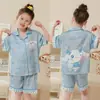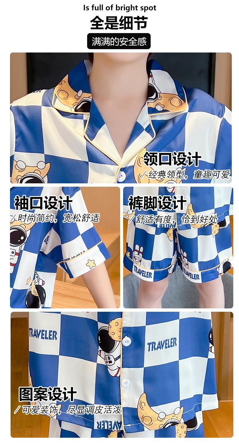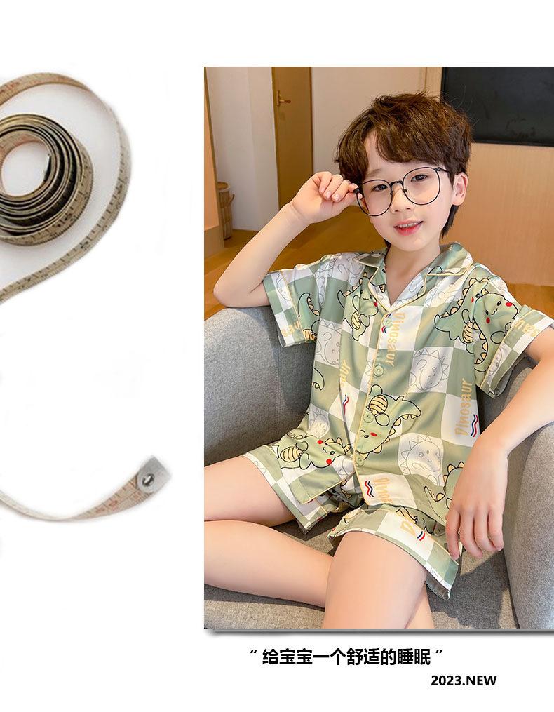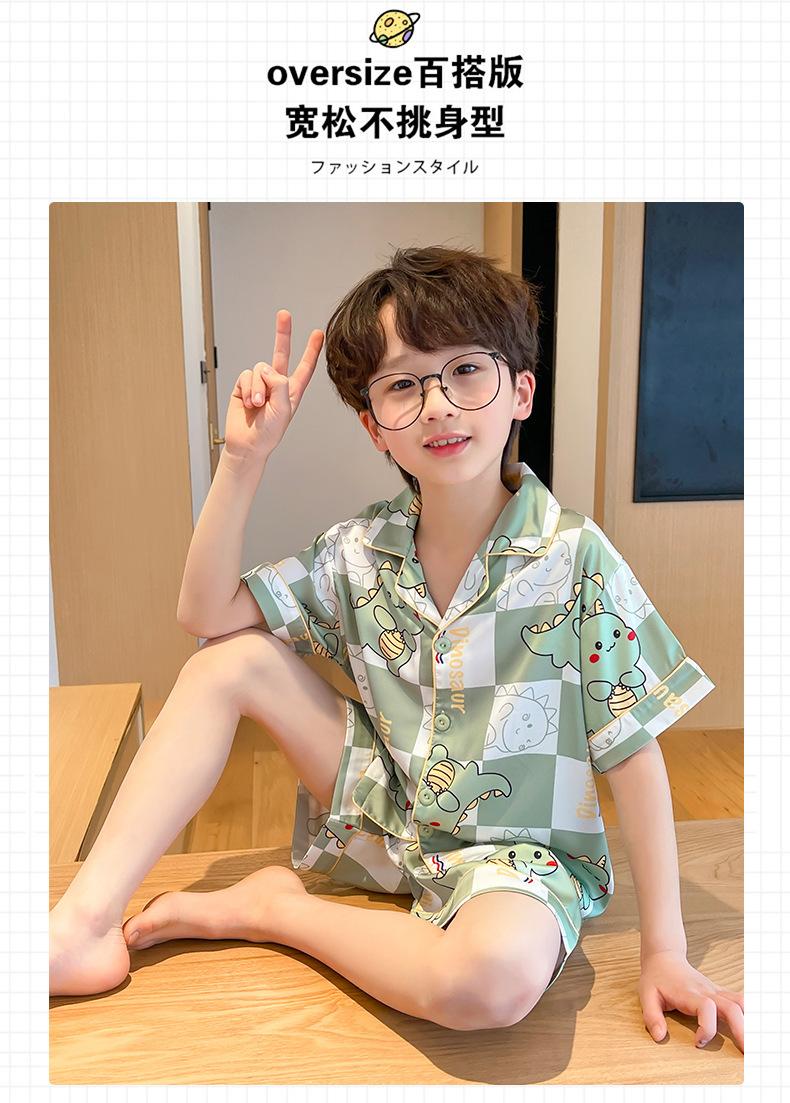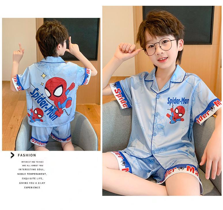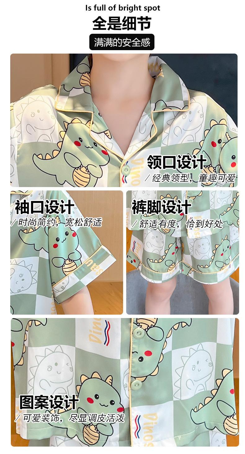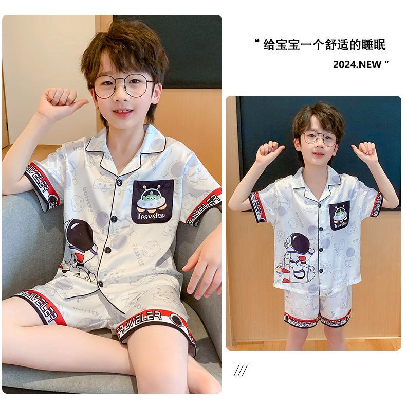 Pijamas de seda de hielo para niños, cárdigan de verano, pantalones cortos de manga corta, ropa de casa cómoda y bonita con dibujos animados para niños y niñas