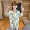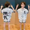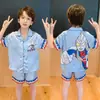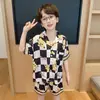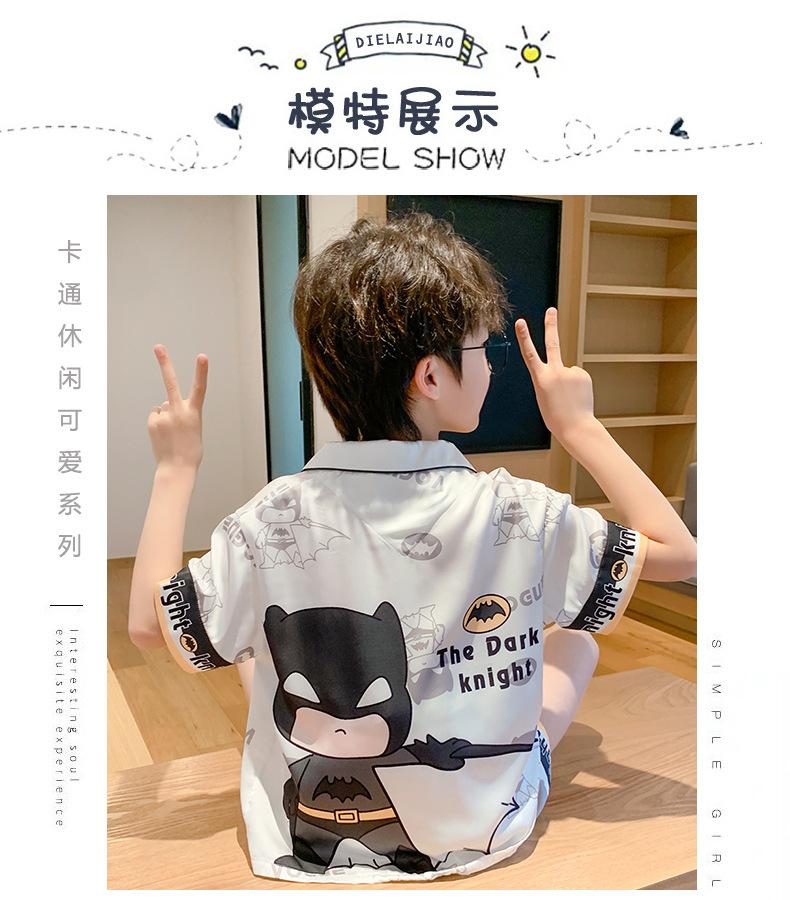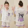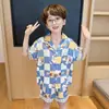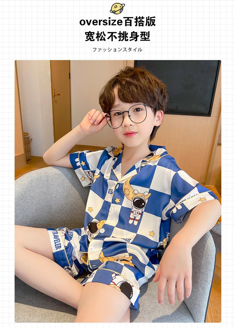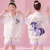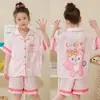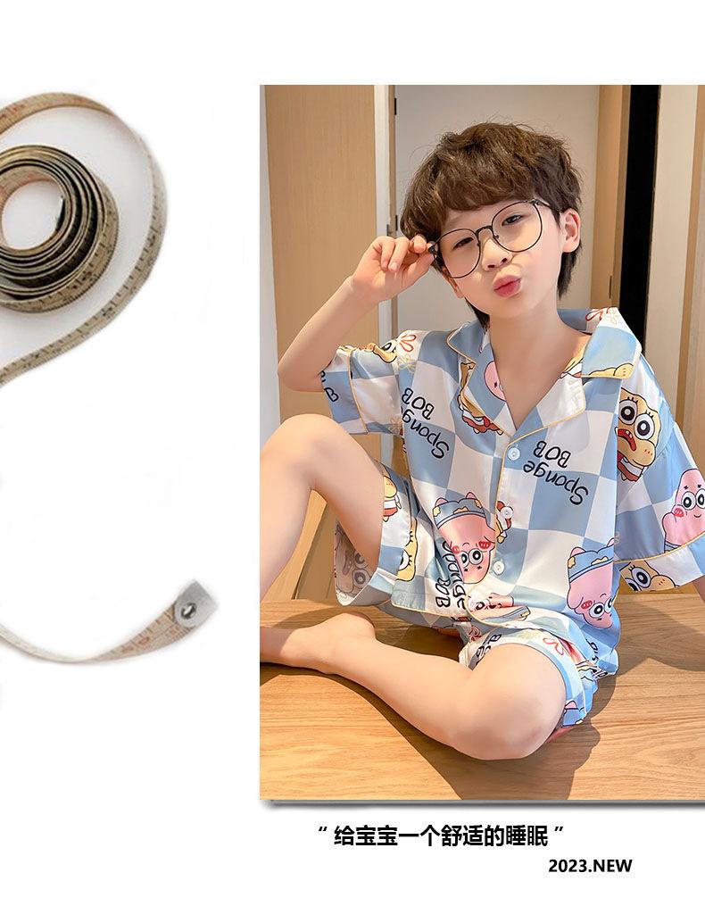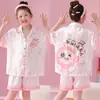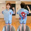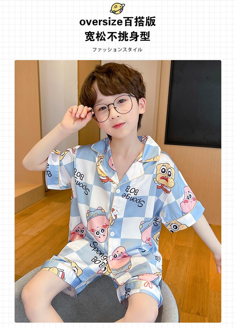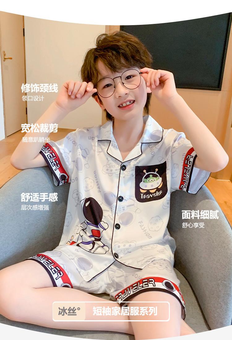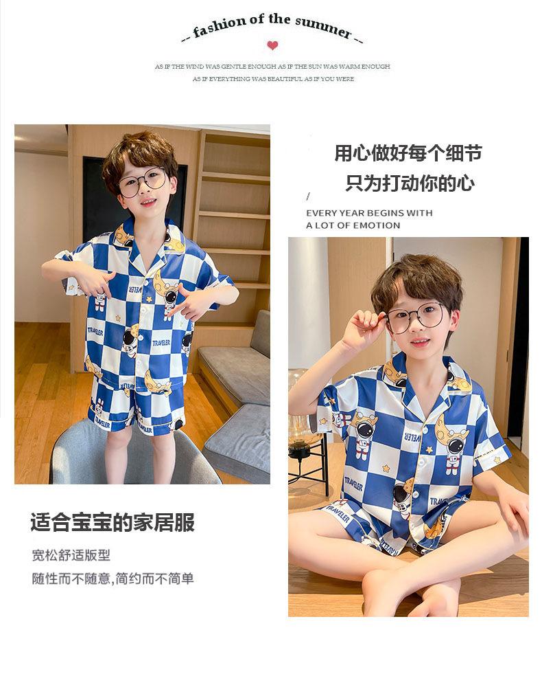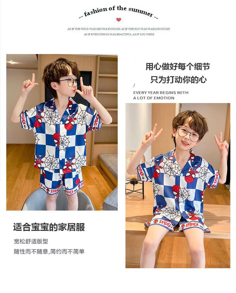 Pijamas de seda de hielo para niños, cárdigan de verano, pantalones cortos de manga corta, ropa de casa cómoda y bonita con dibujos animados para niños y niñas