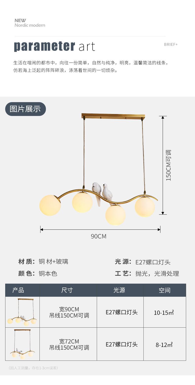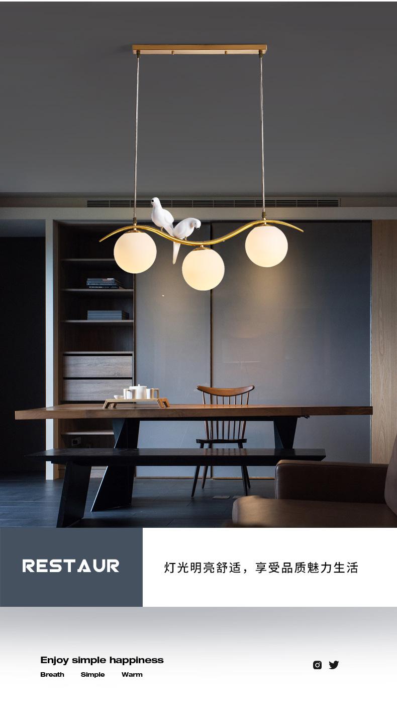 Lámpara de araña de cobre para restaurante, venta al por mayor de fábrica, lámpara de tira personalizada, creativa, con diseño de pájaro, para bar, sala de estar y comedor, lámparas nórdicas