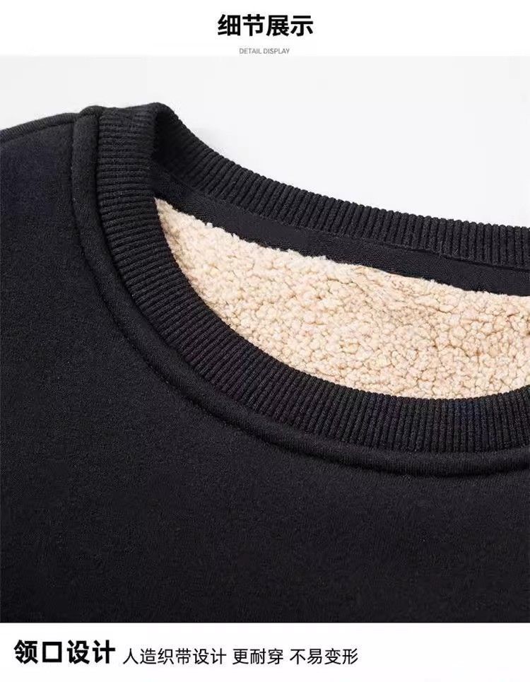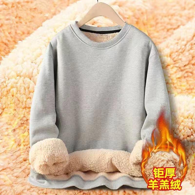 Talla grande Otoño e Invierno Felpa Color Sólido Cuello Redondo Sudadera de Hombre Estilo Coreano a la Moda Ins Forro Polar Engrosado Cálido Chaqueta de Cachemira