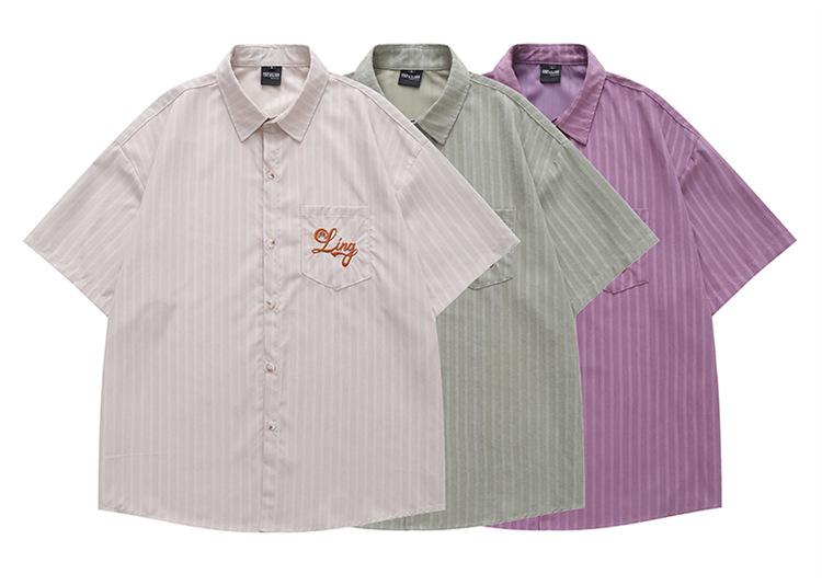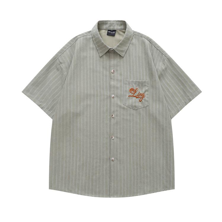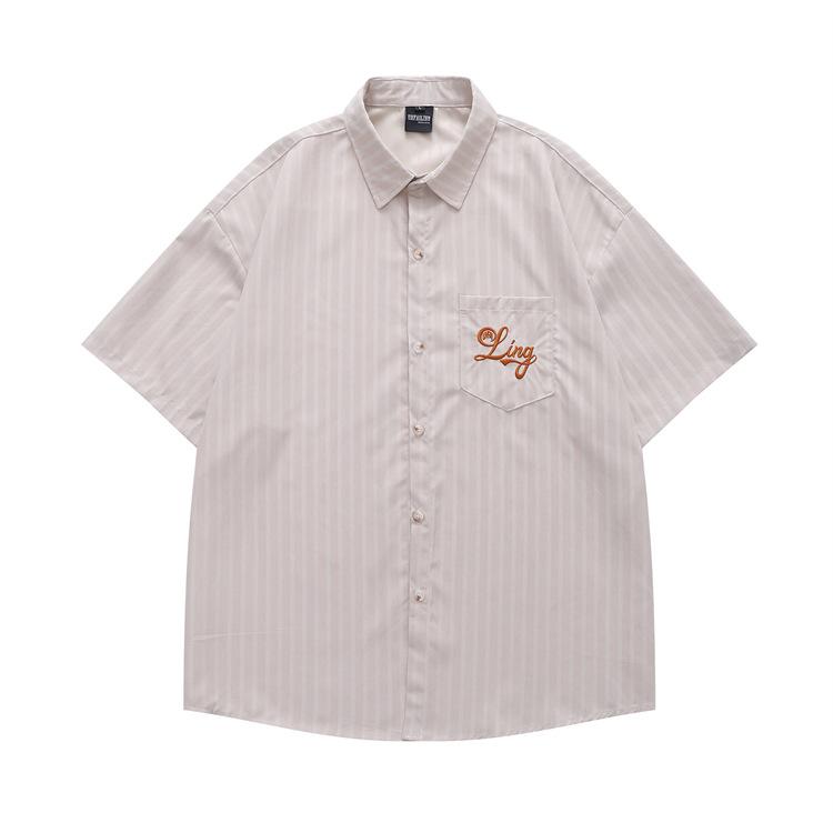 Camisa vintage de manga corta con bordado a rayas para hombre y mujer, marca de moda de verano 2024, nueva camisa holgada para parejas.