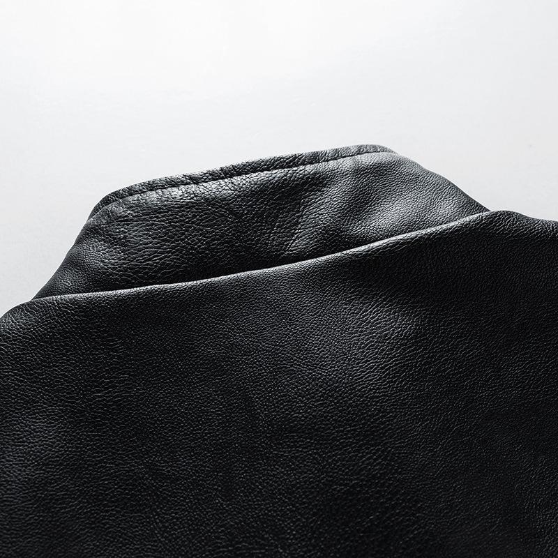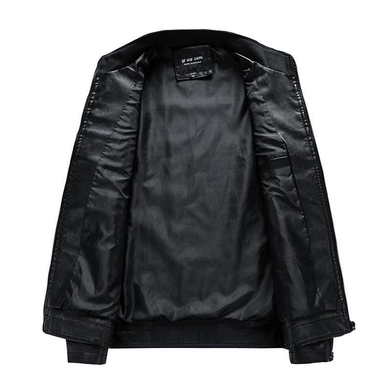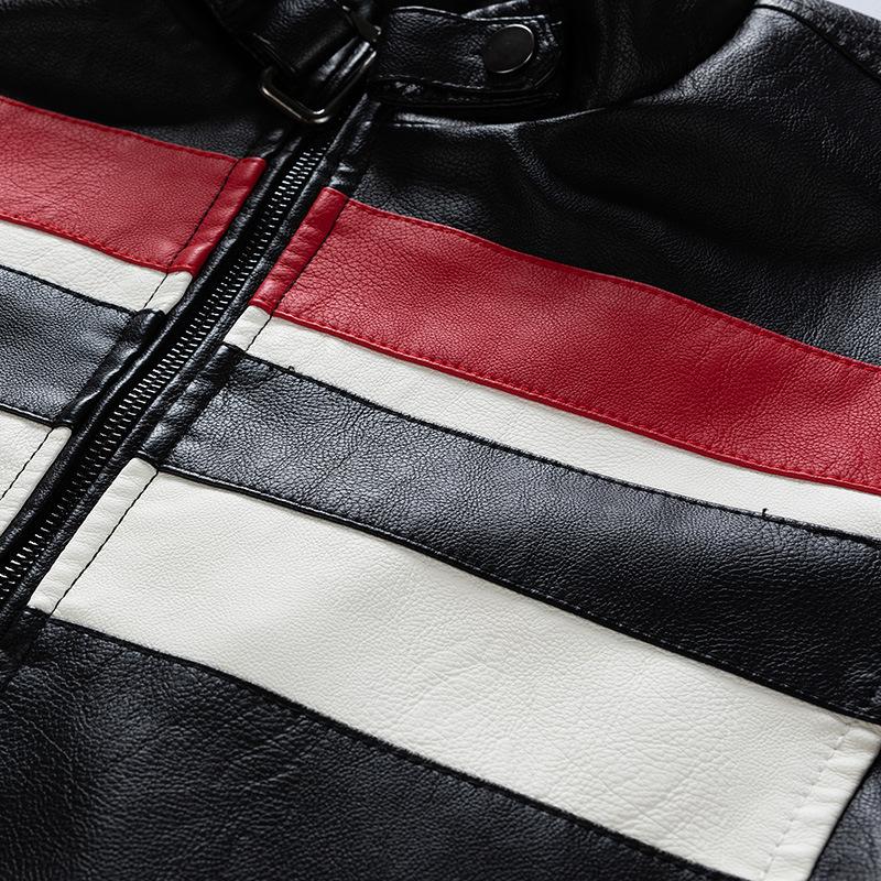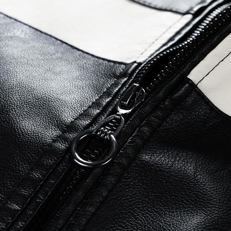 Chaqueta de cuero con costuras transfronterizas para hombre, abrigo de PU, ropa de motocicleta, forro polar, corte entallado, 2025