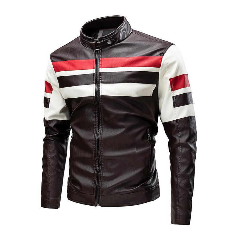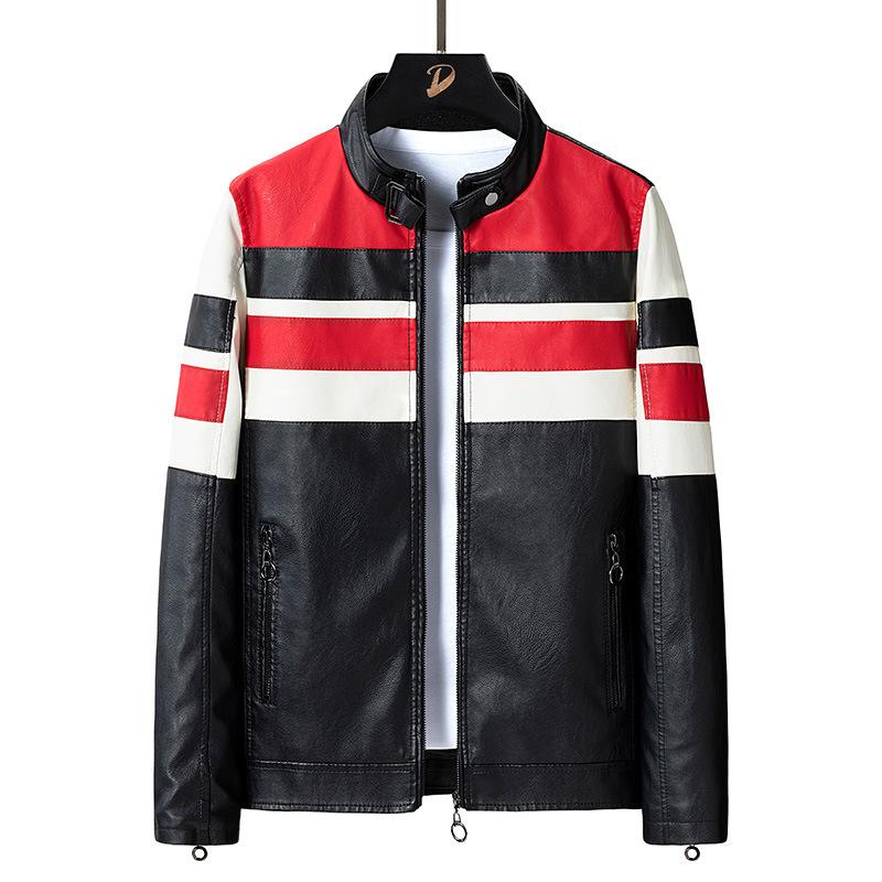 2022 nueva ropa de hombre transfronteriza chaqueta de cuero con costuras chaqueta de hombre abrigo de pu ropa de motocicleta chaqueta de cuero con terciopelo para hombre corte slim