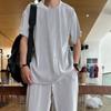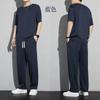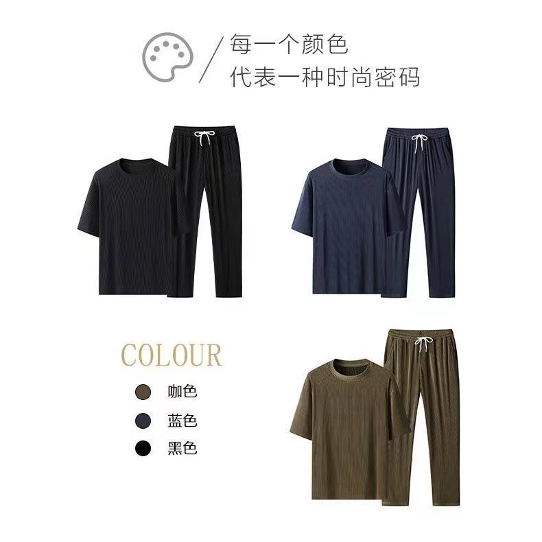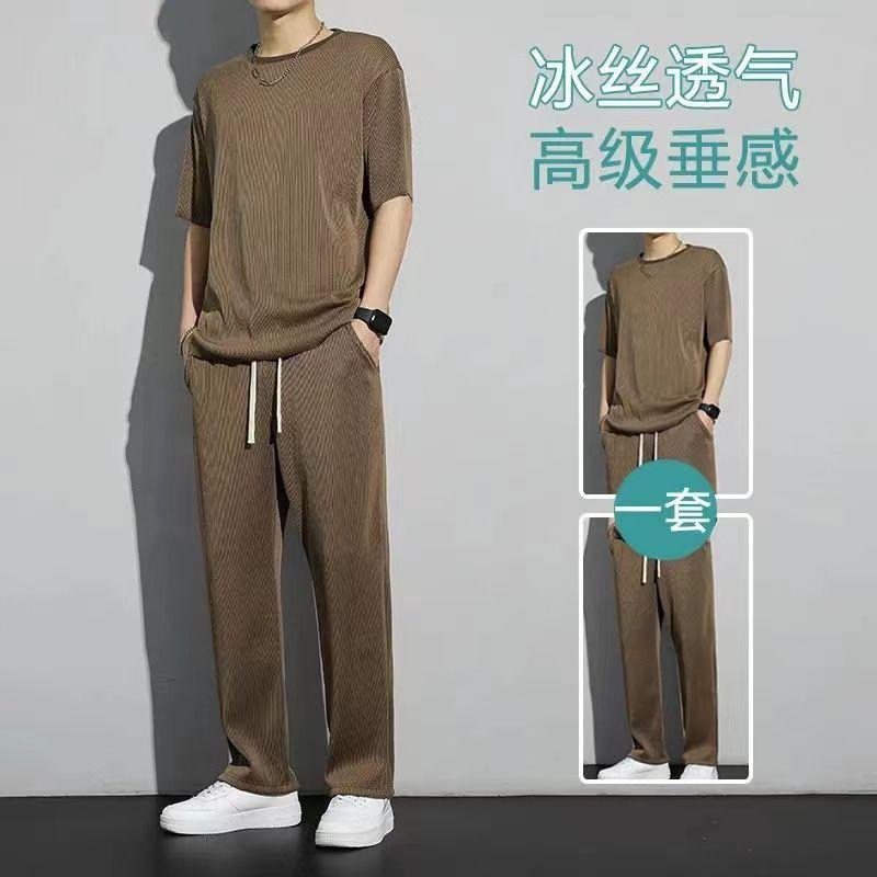 Traje deportivo de seda de hielo para hombre, camiseta fina de manga corta de verano, pantalones largos casuales de secado rápido, conjunto de ropa de media manga