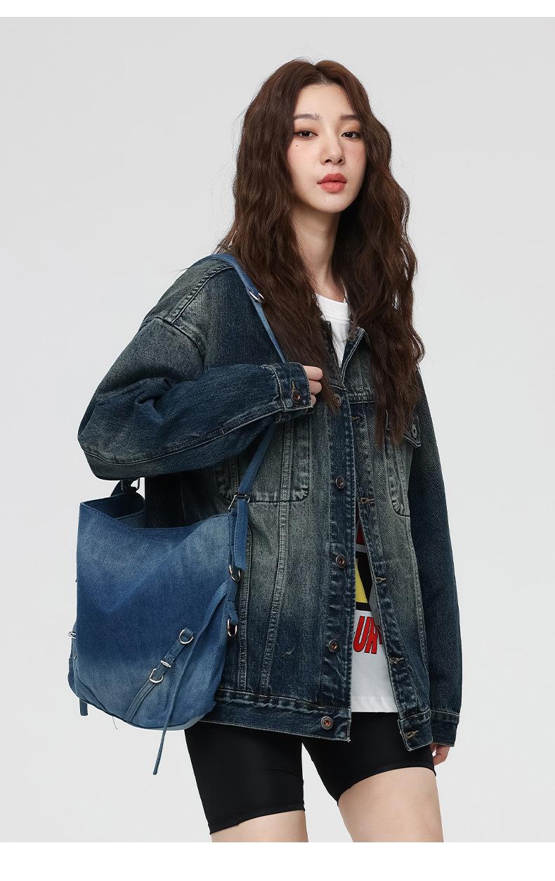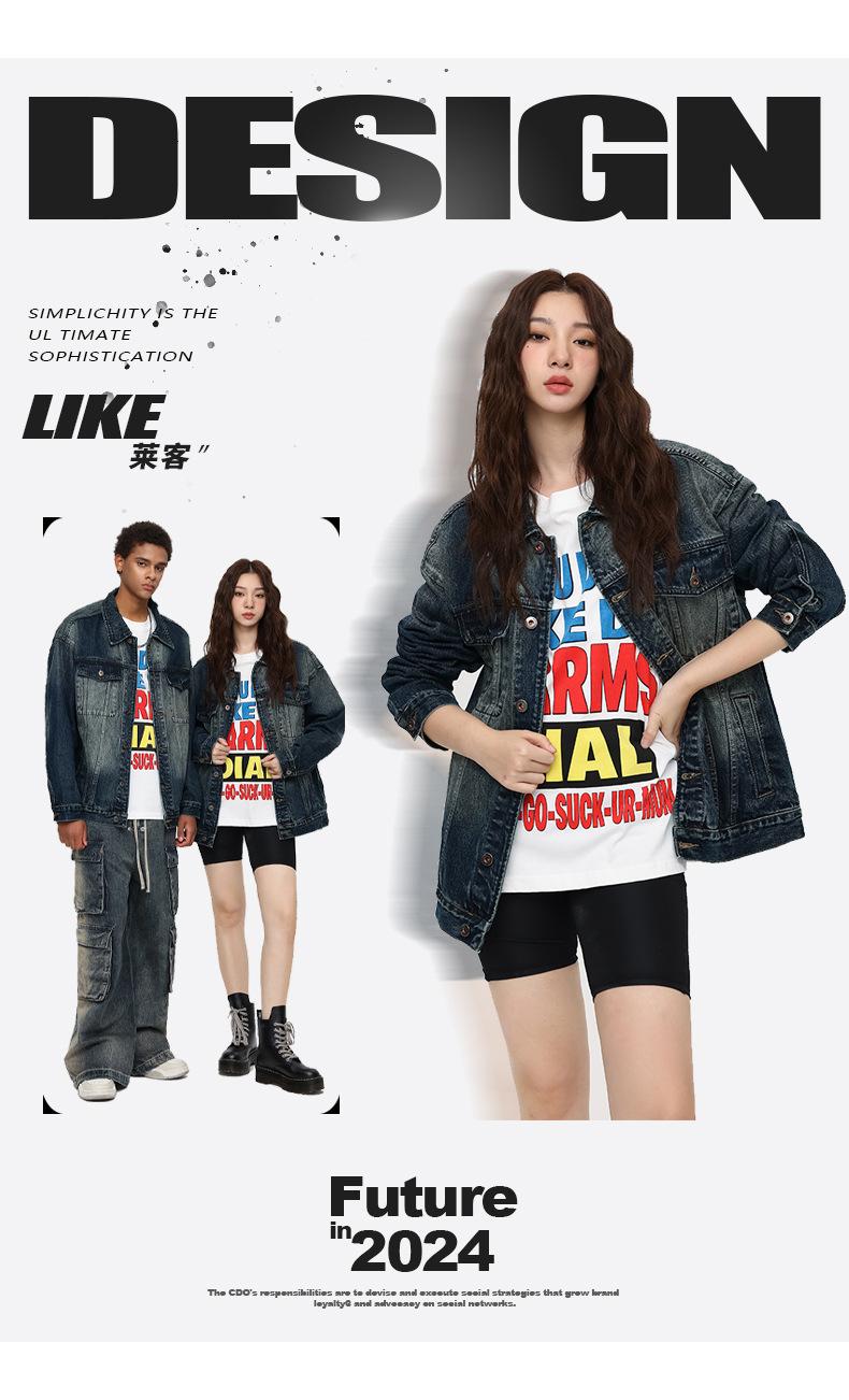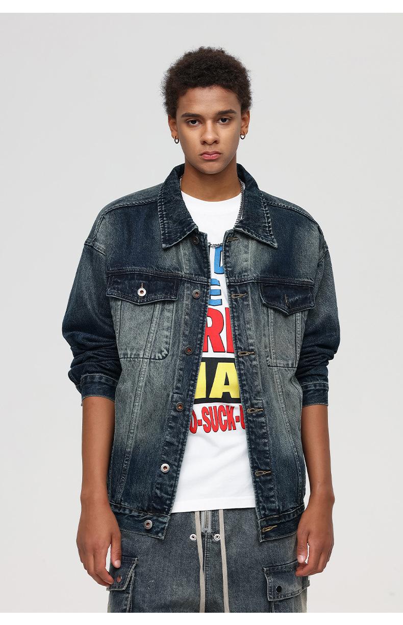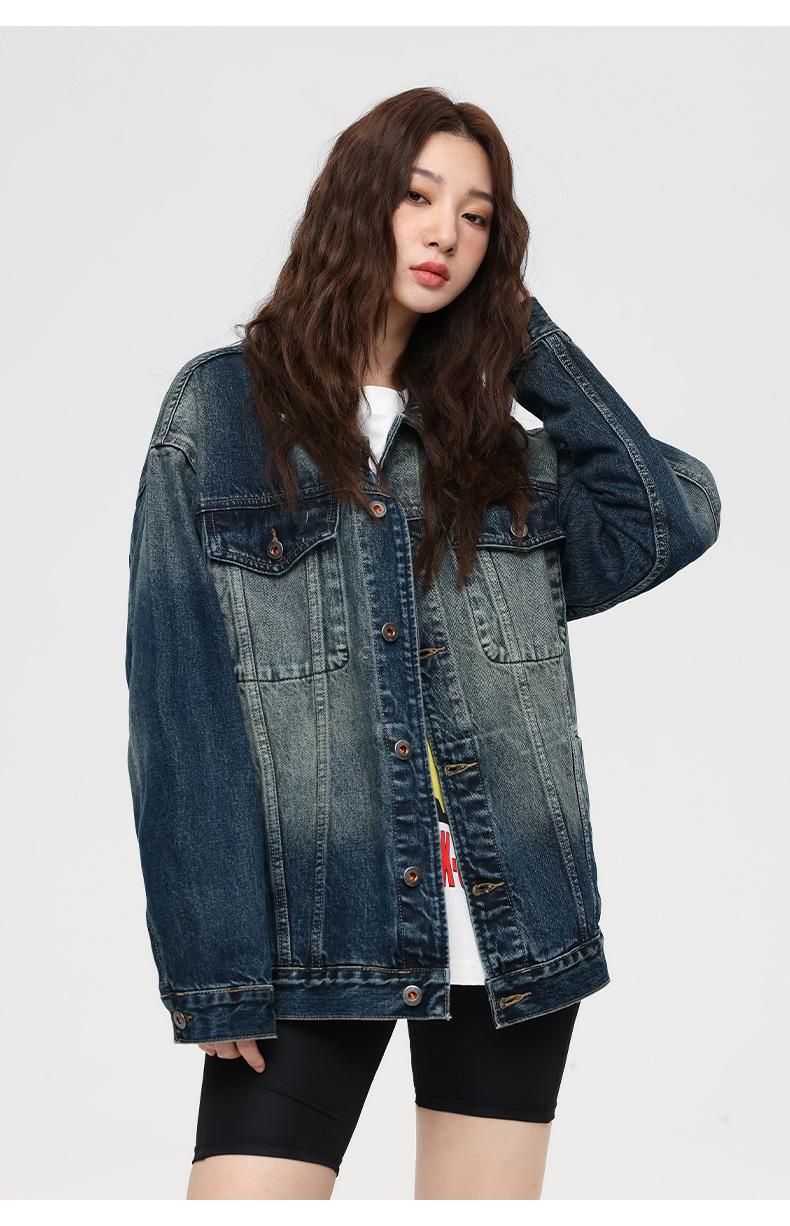 Esta moderna chaqueta vaquera es más holgada que las tallas normales, por lo que puede resultar más adecuada si eliges una talla más pequeña que tu talla original.