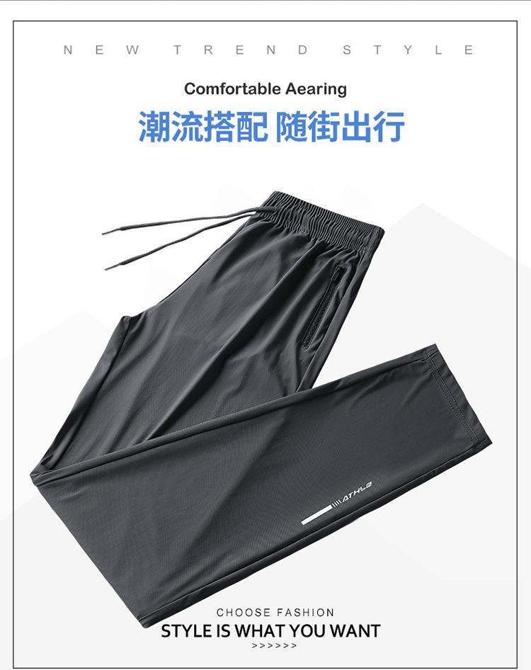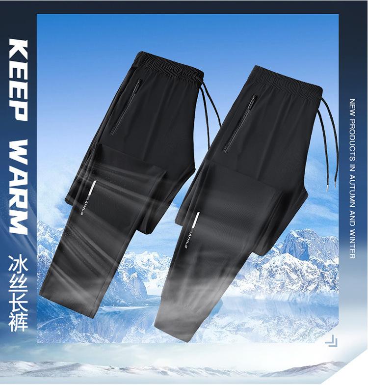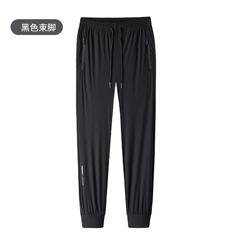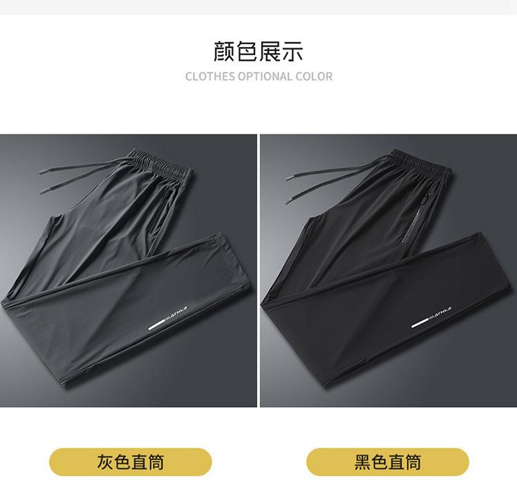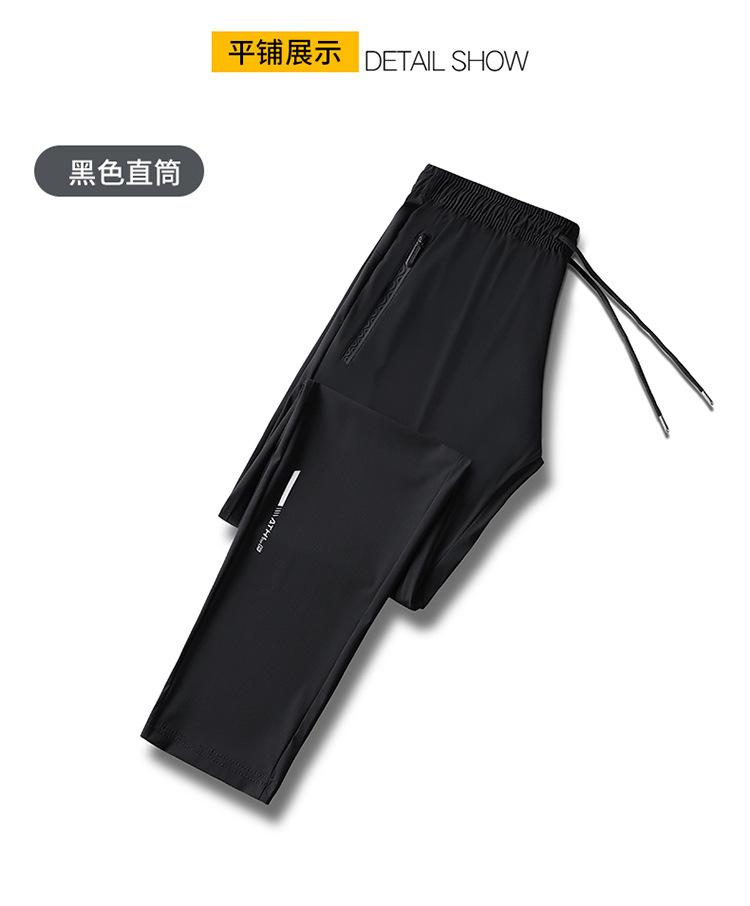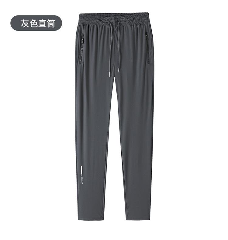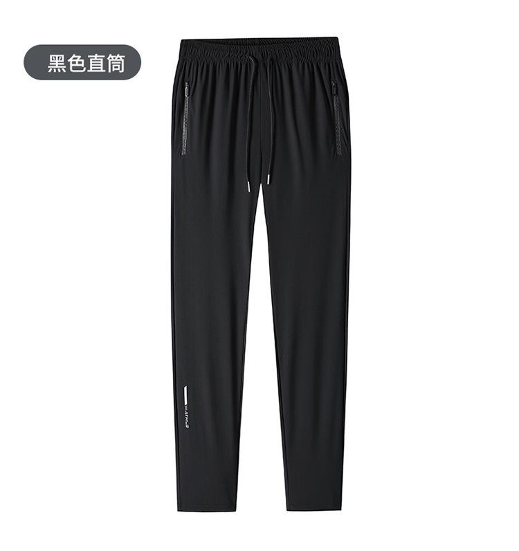 Pantalones de seda de hielo nuevos para hombre, pantalones deportivos casuales, pantalones rectos, pantalones de pierna elástica, de verano, de secado rápido, talla grande, estilo coreano de moda.