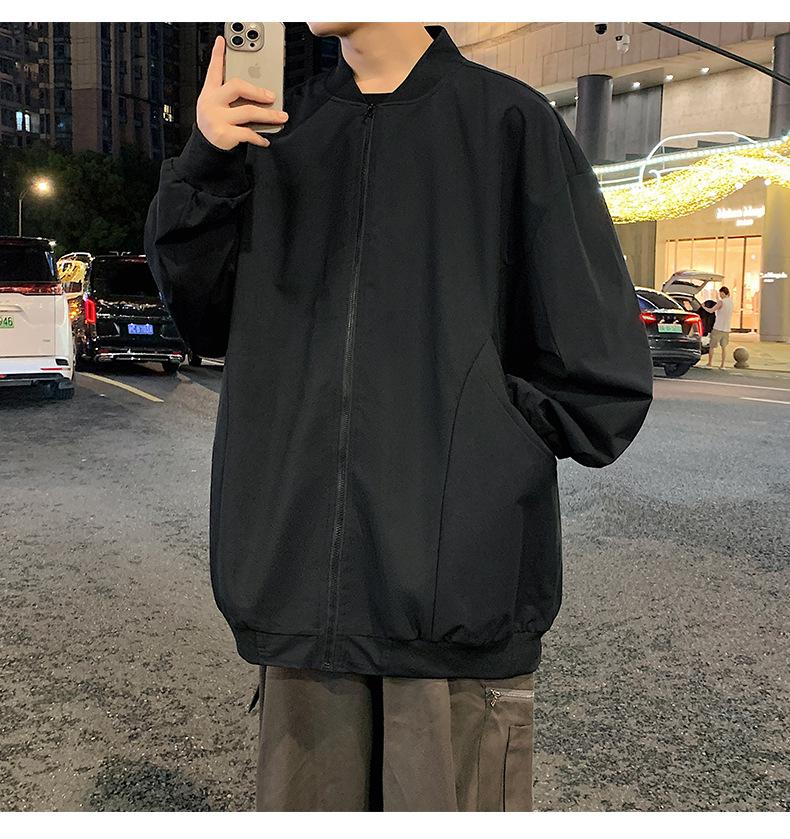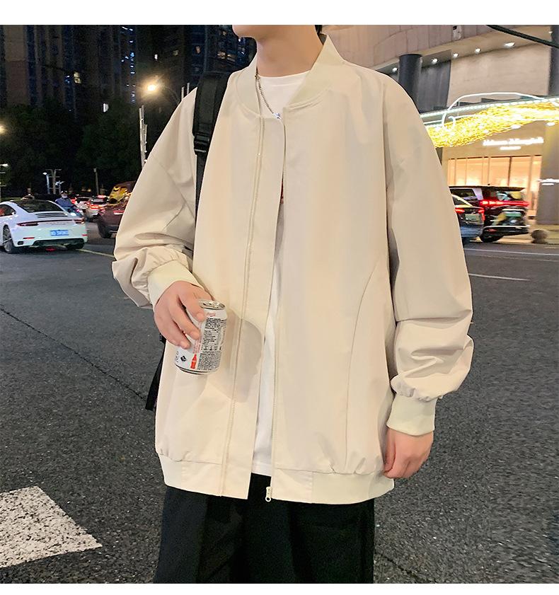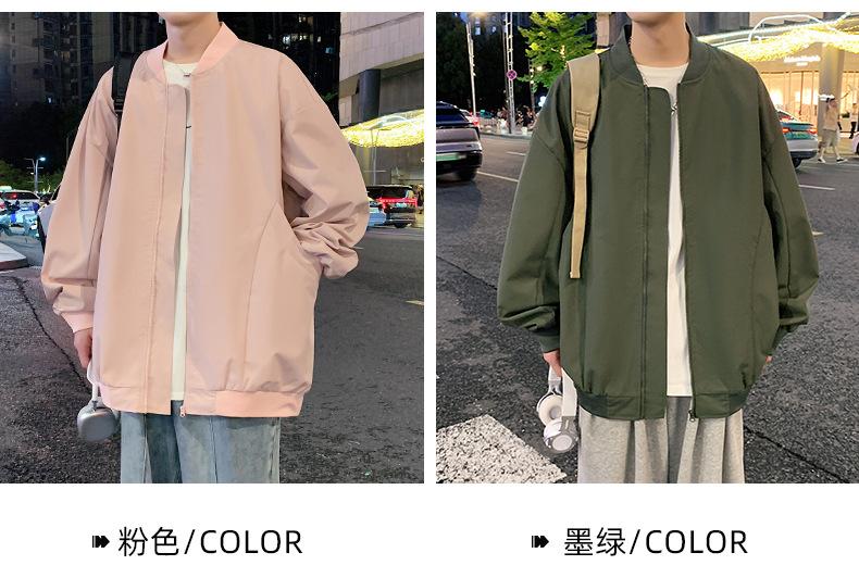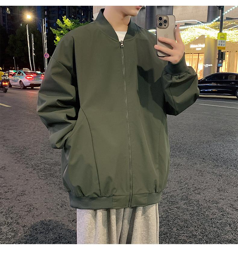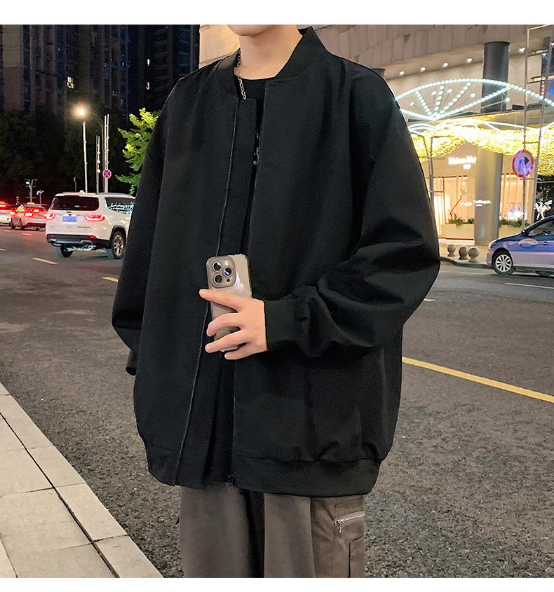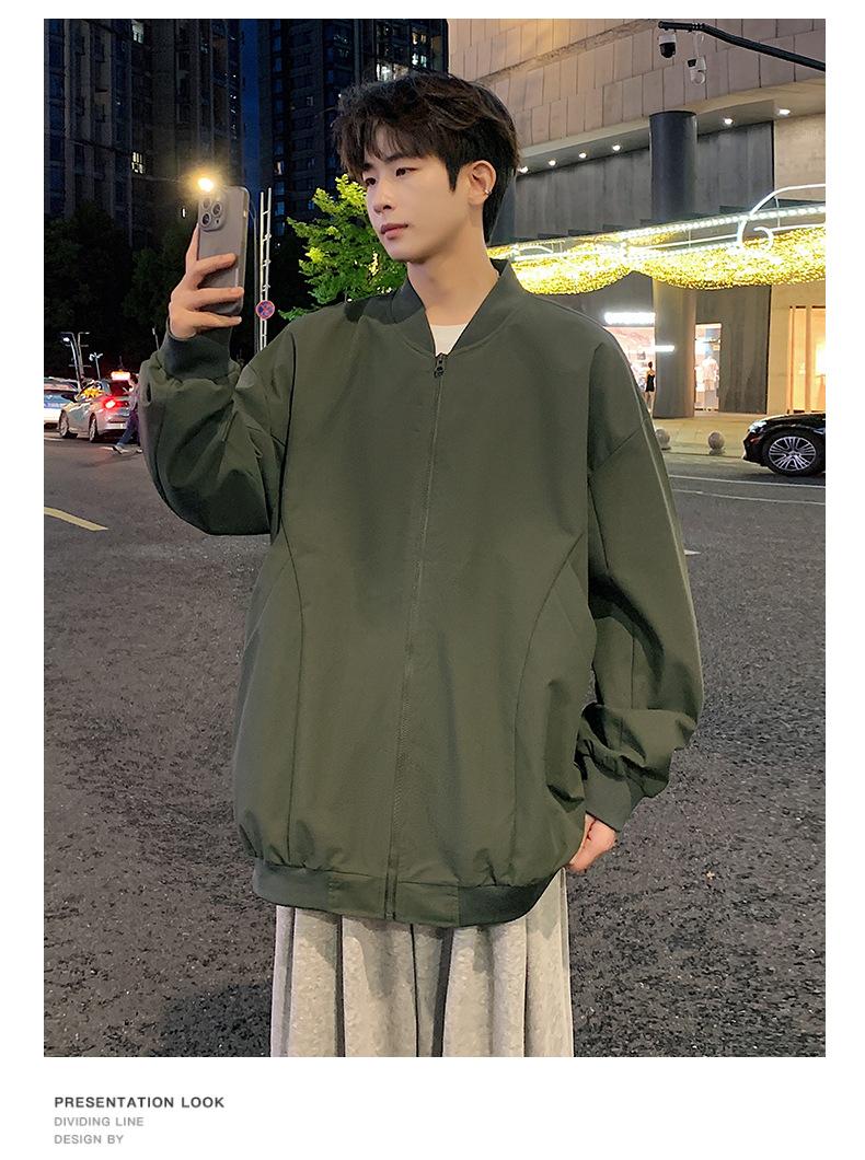 Chaqueta con cuello de béisbol para hombre, primavera y otoño 2024, nueva chaqueta holgada de color liso para adolescentes, ropa superior elegante e informal a la moda.