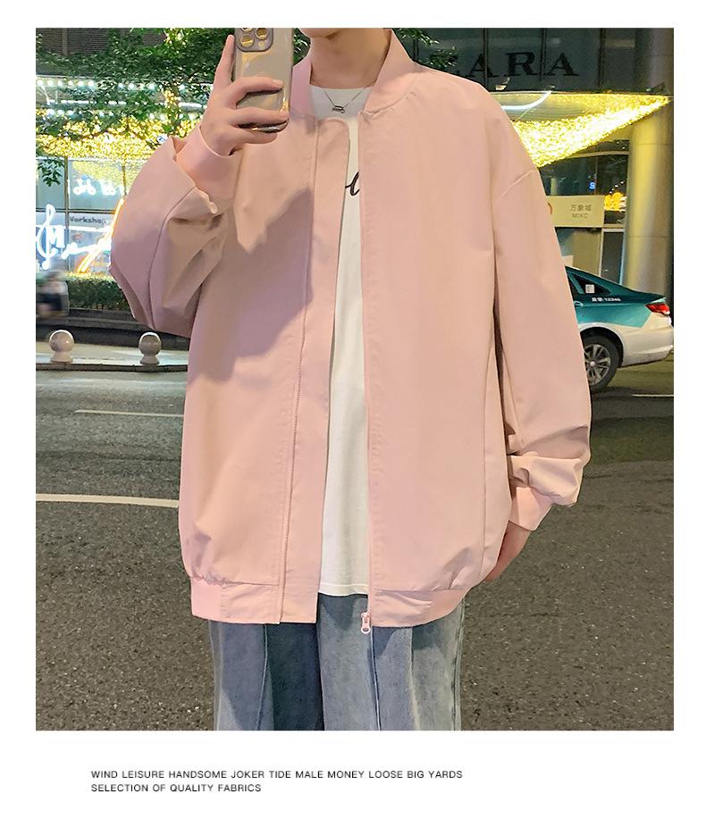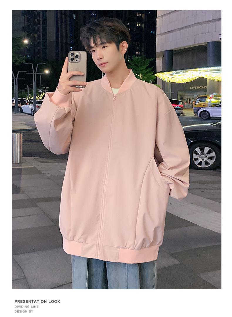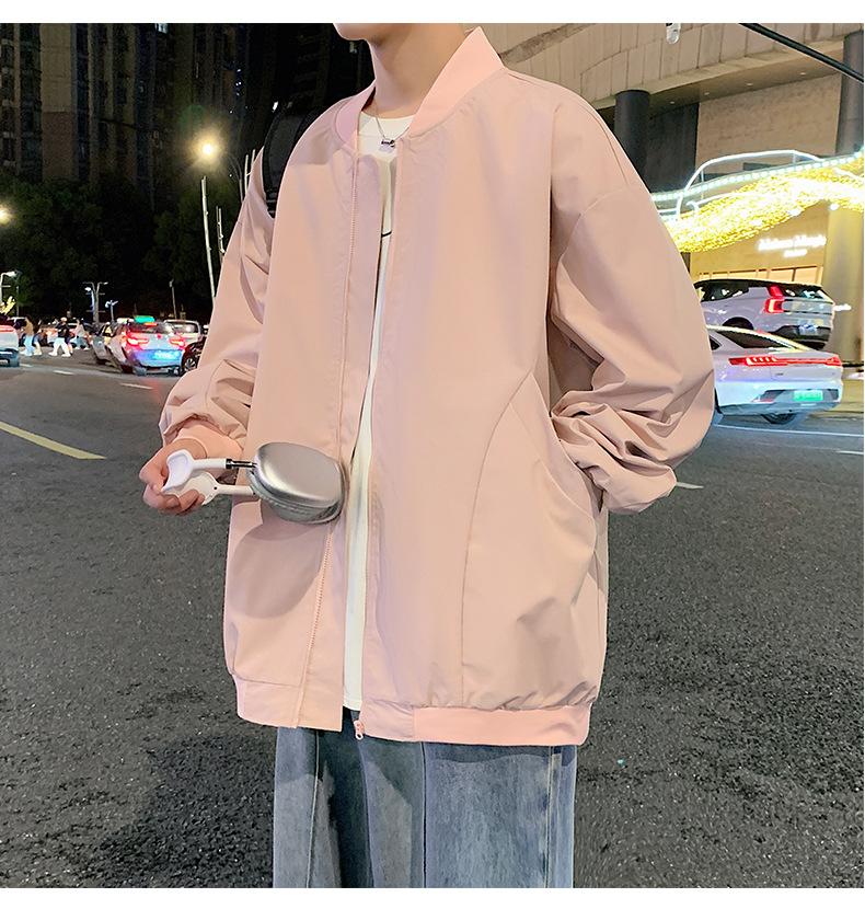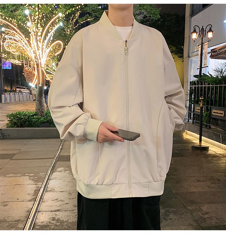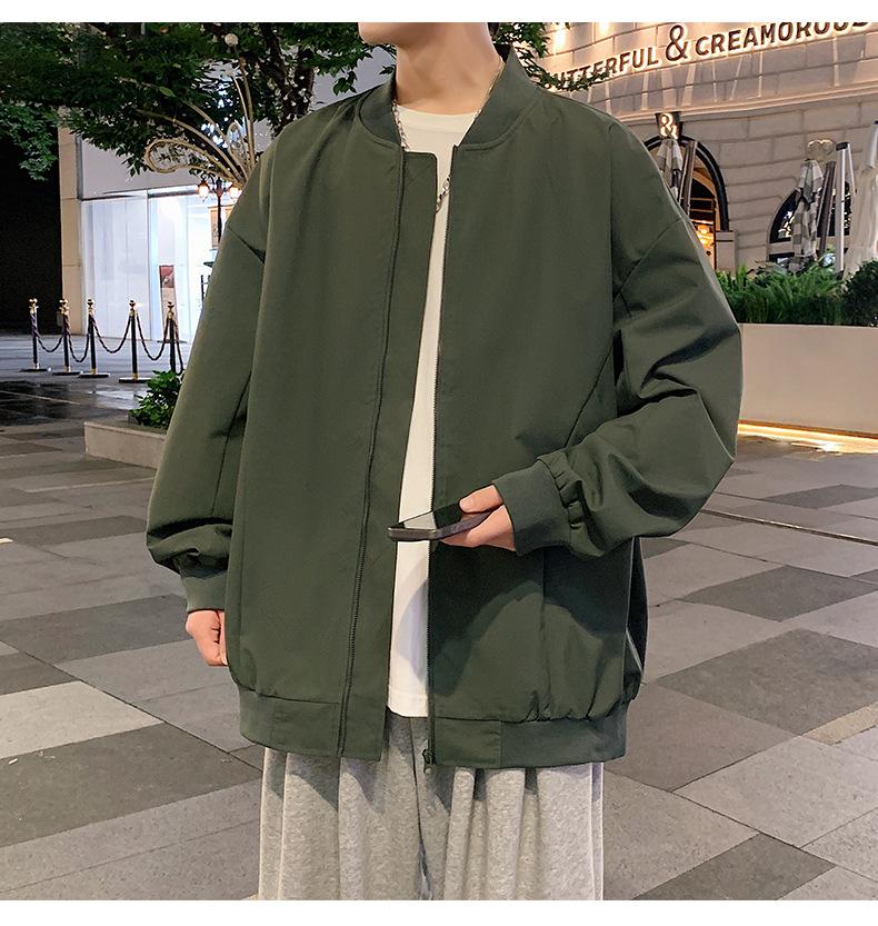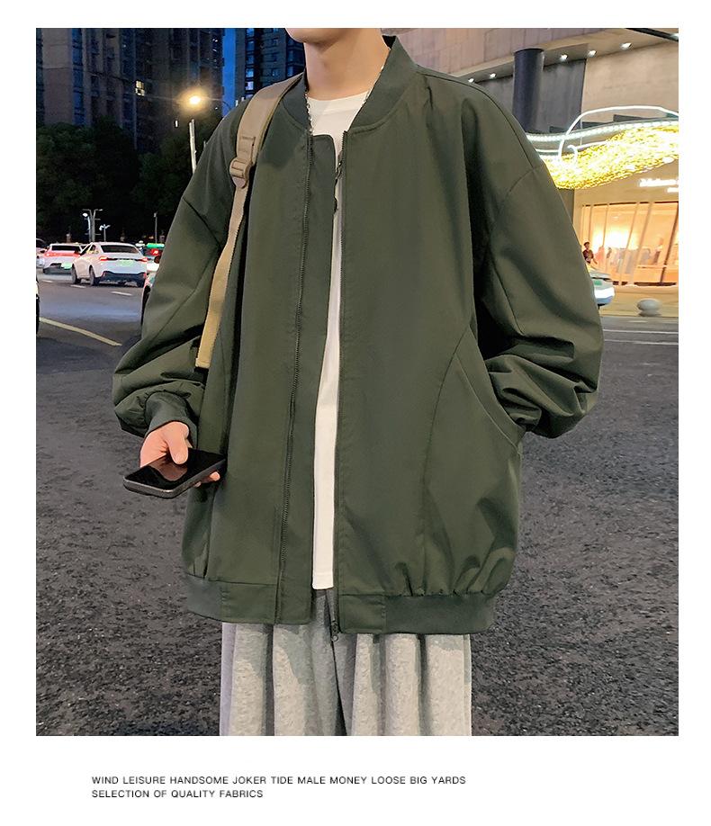 Chaqueta con cuello de béisbol para hombre, primavera y otoño 2024, nueva chaqueta holgada de color liso para adolescentes, ropa superior elegante e informal a la moda.