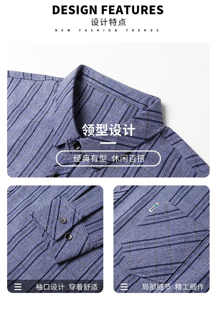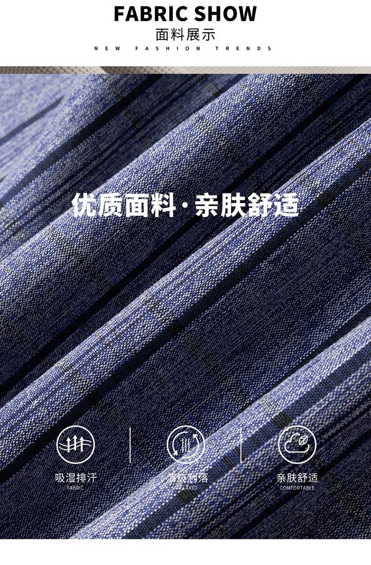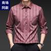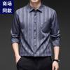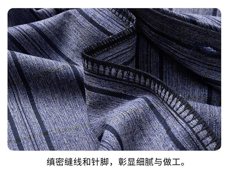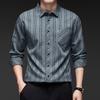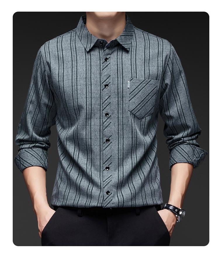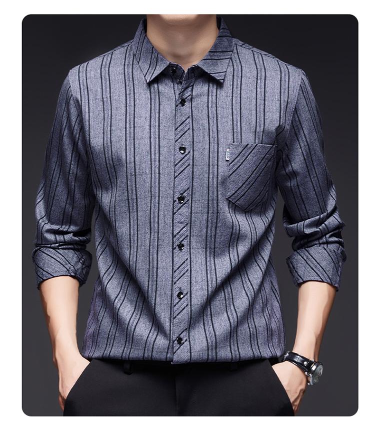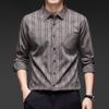 Nuevo Otoño con Seda de Morera Bolsillo Real Camisa de Manga Larga para Hombre Top Rayado de Algodón y Lino Camisa con Sentido Cabello de Hombre
