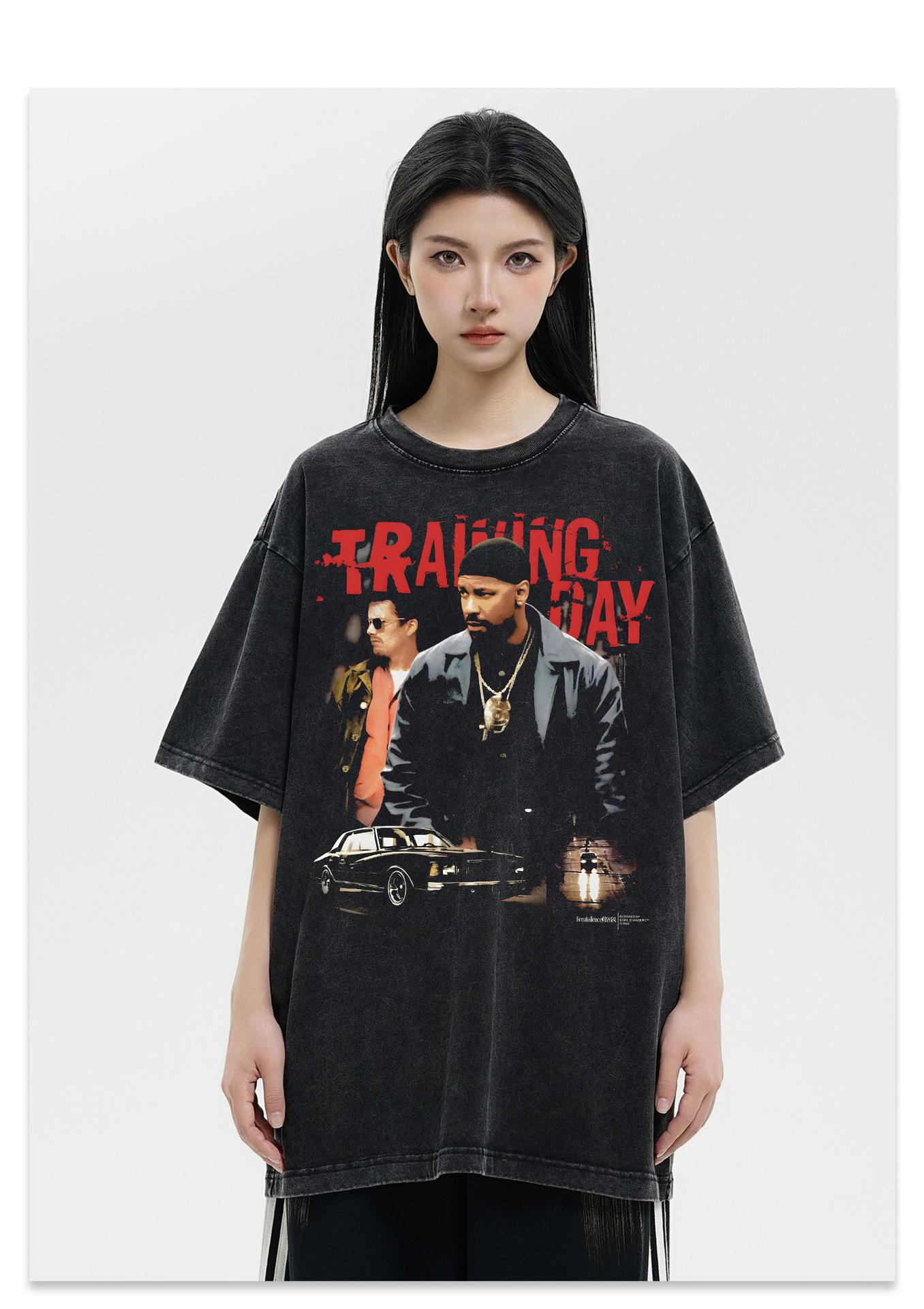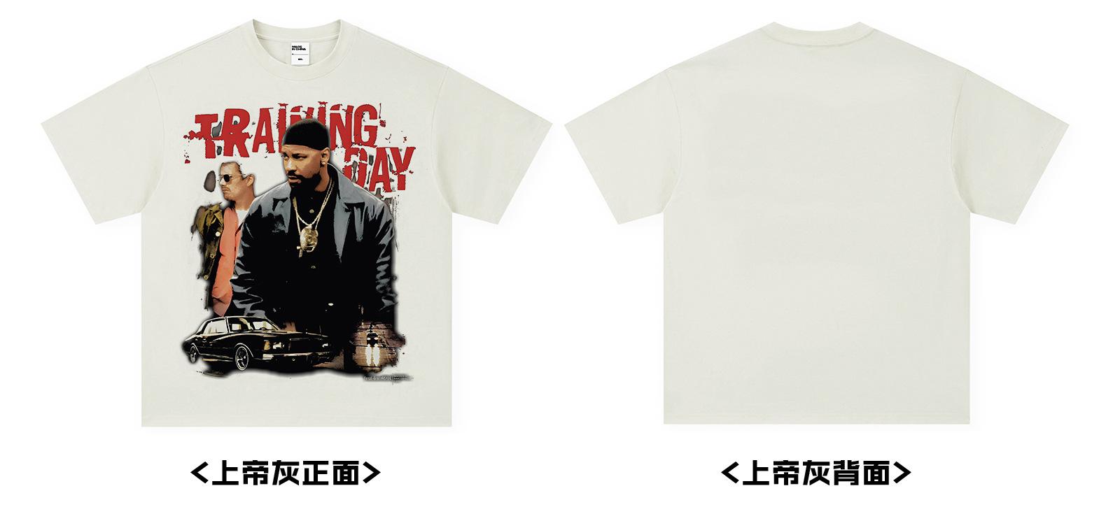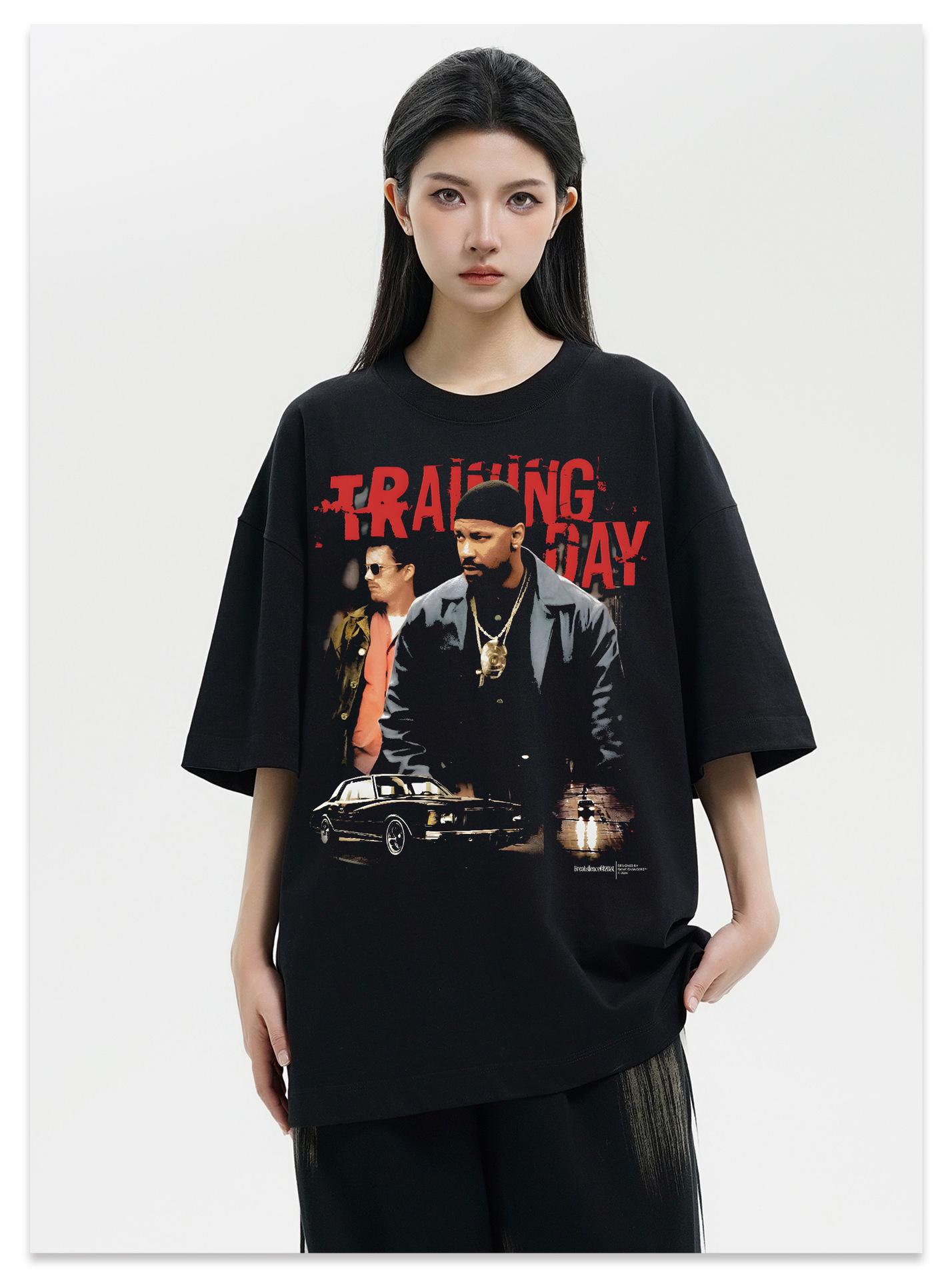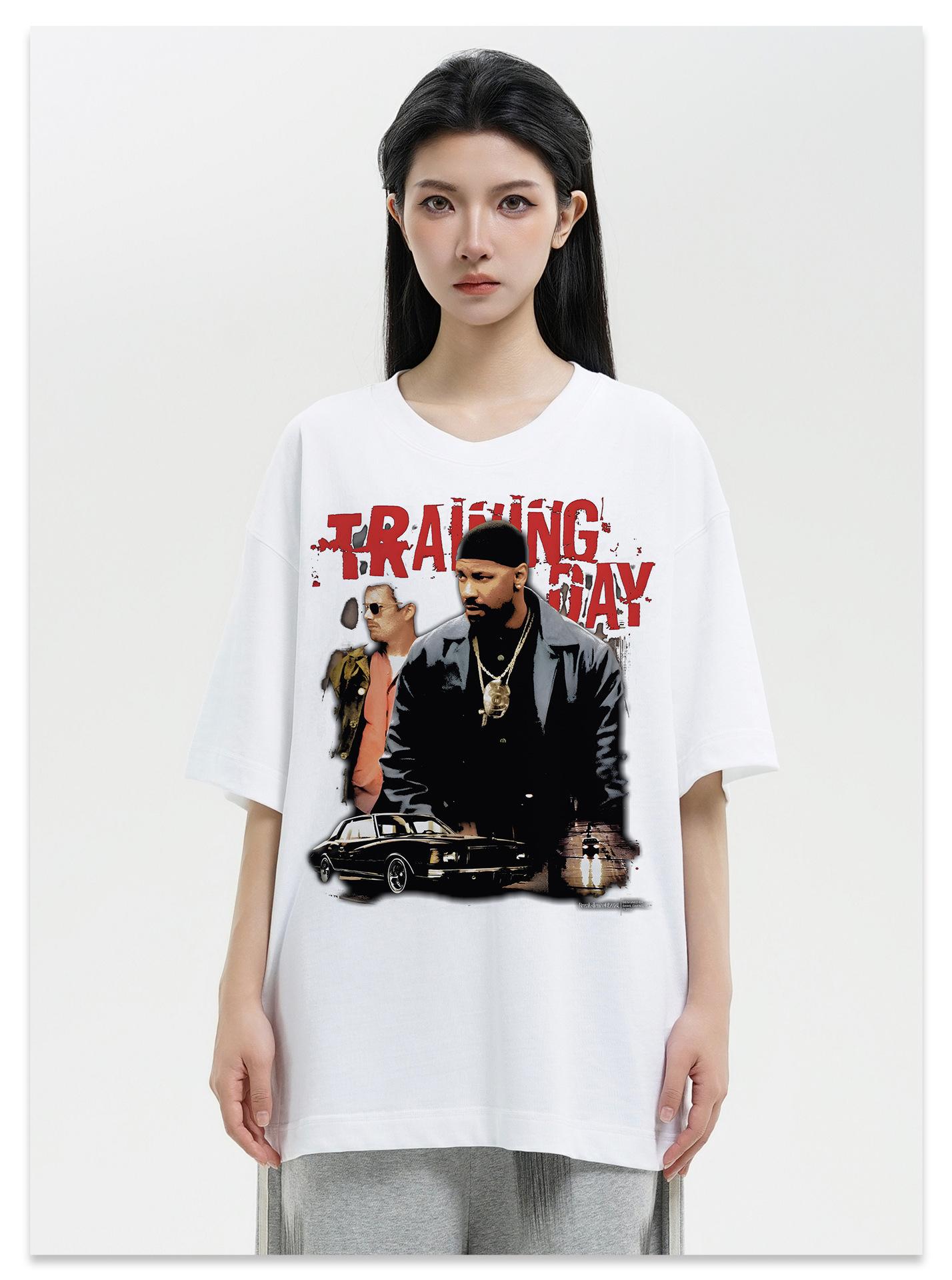Día de Entrenamiento DÍA DE ENTRENAMIENTO Película Americana vintageBootleg Transfronteriza Camiseta de Manga Corta Hombro Pesado Marea
