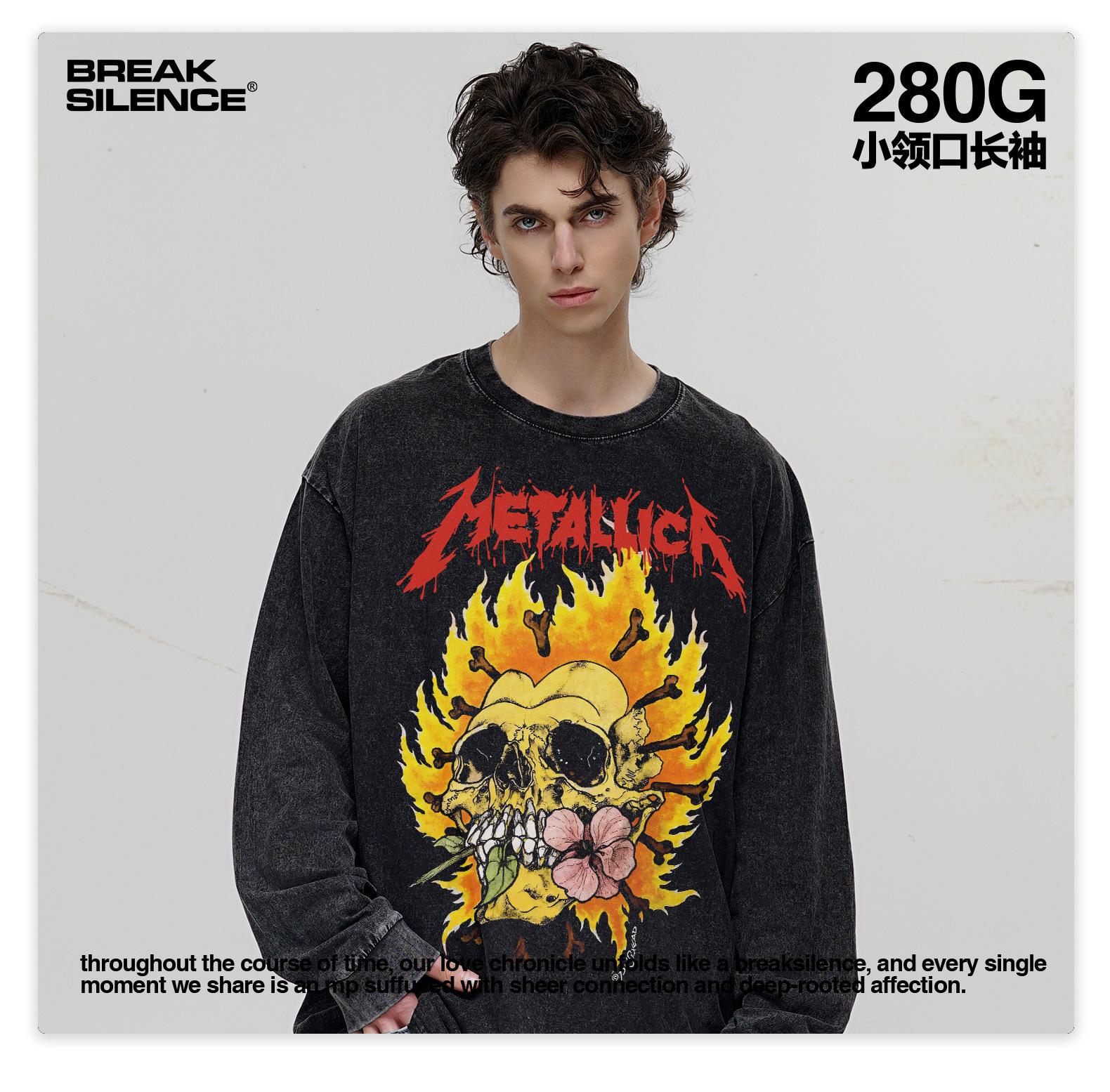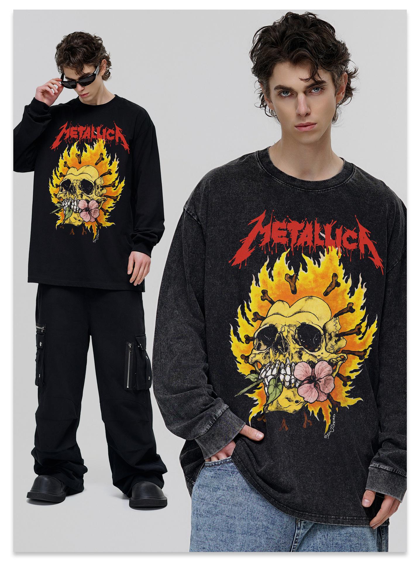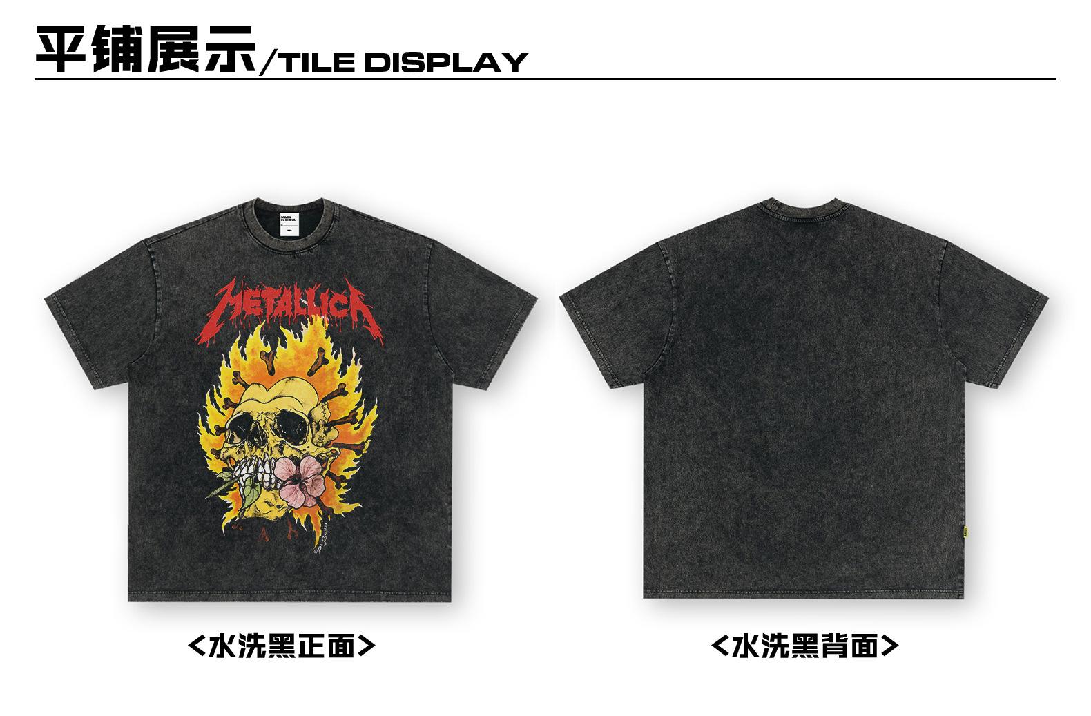 Compra Metallica American vintage Heavy Camiseta de manga corta Nueva Impresa Transfronteriza Lavada Vieja Camiseta para Hombres y Mujeres al por mayor en Joom.pro