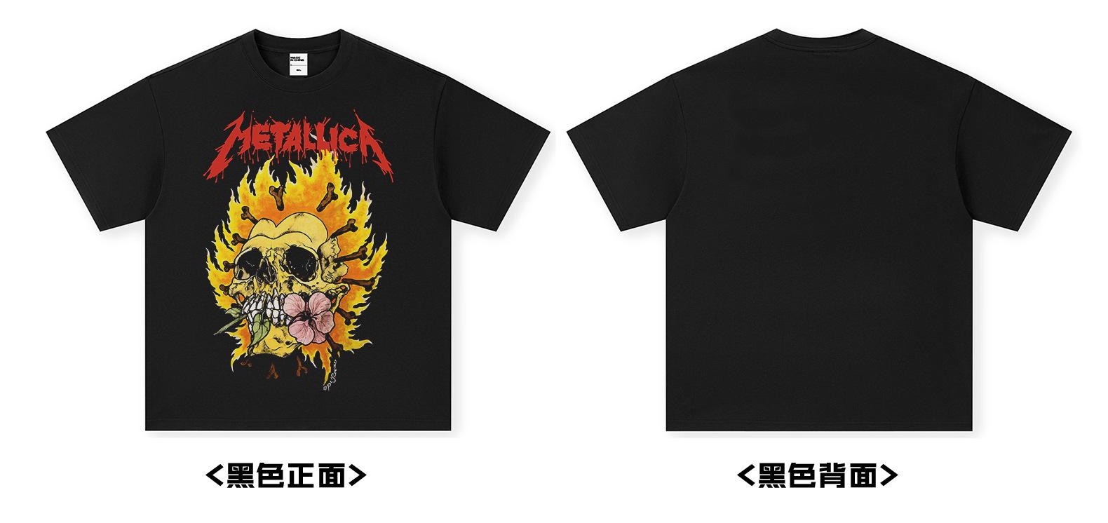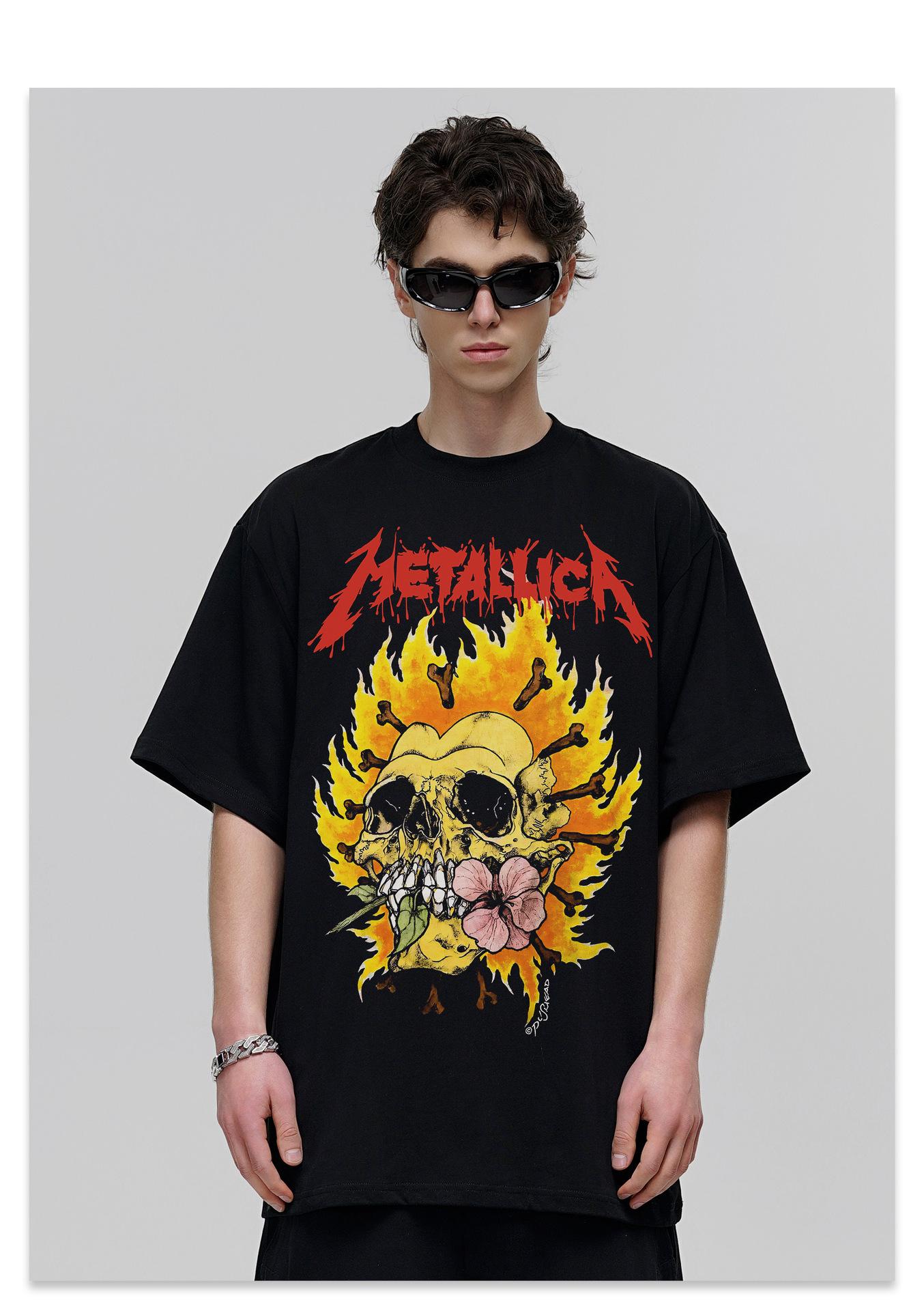 Metallica American vintage Heavy Camiseta de manga corta Nueva Impresa Transfronteriza Lavada Vieja Camiseta para Hombres y Mujeres