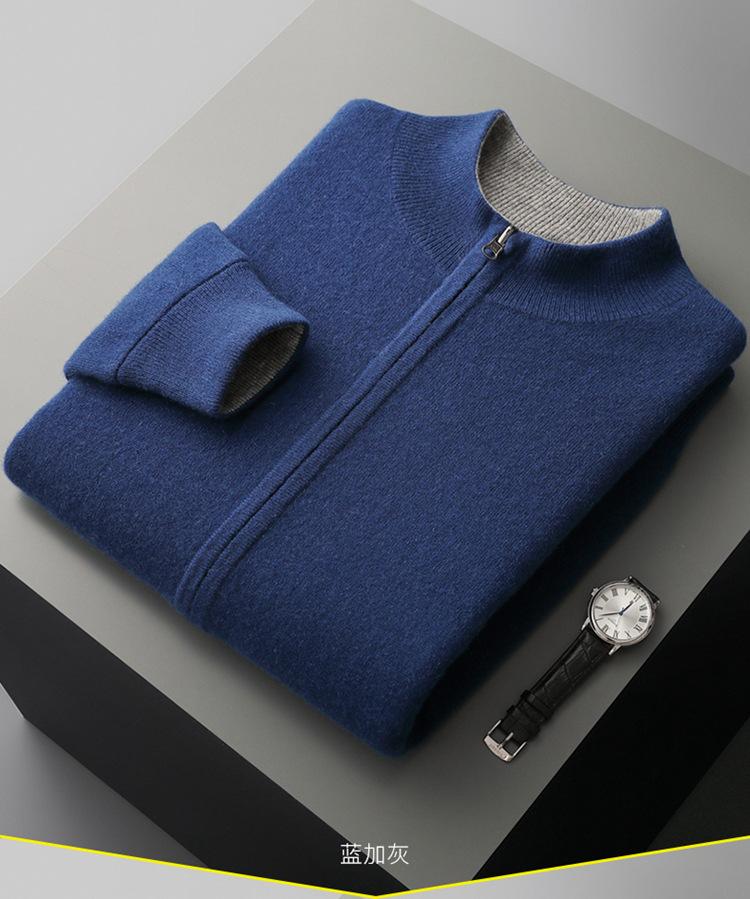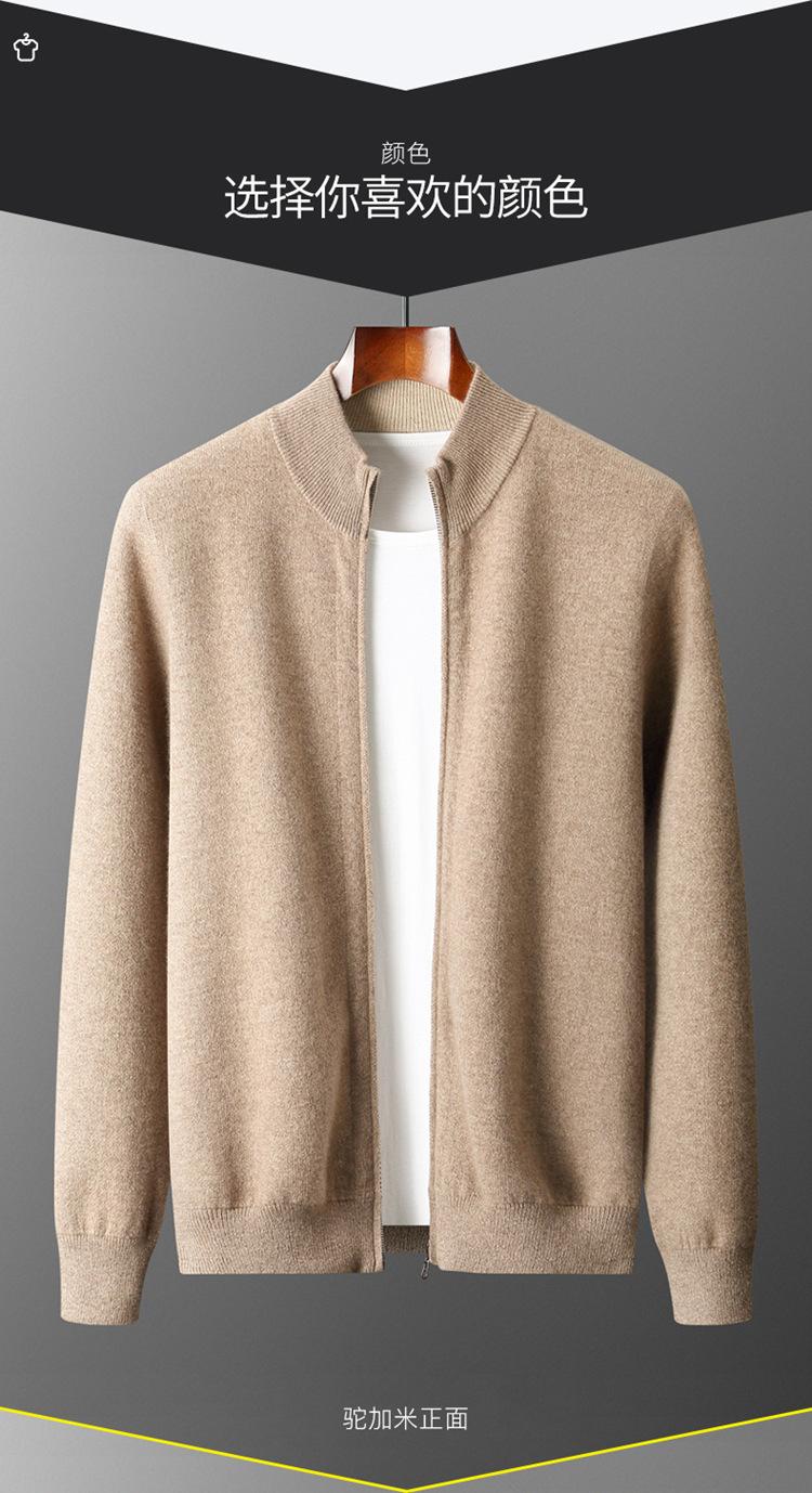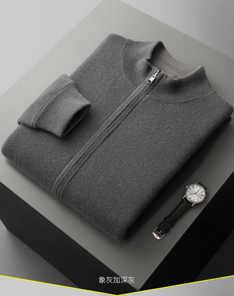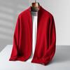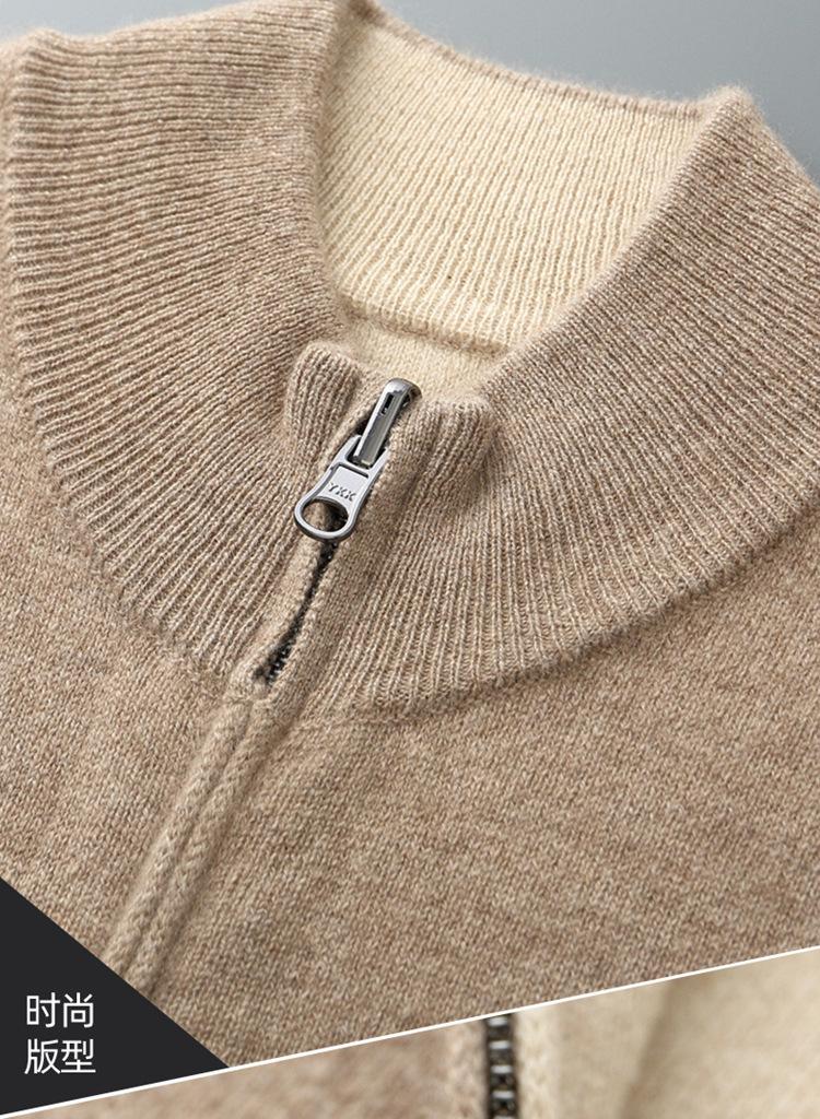 Cárdigan de Lana Nuevo de Otoño e Invierno para Hombre con Cuello Alto y Cremallera, Suéter Tejido de Color Puro, Chaqueta Cálida Holgada de Cachemira, Top