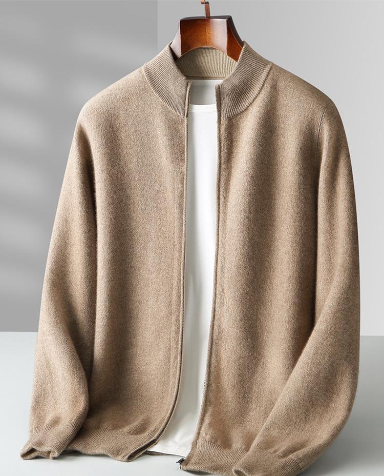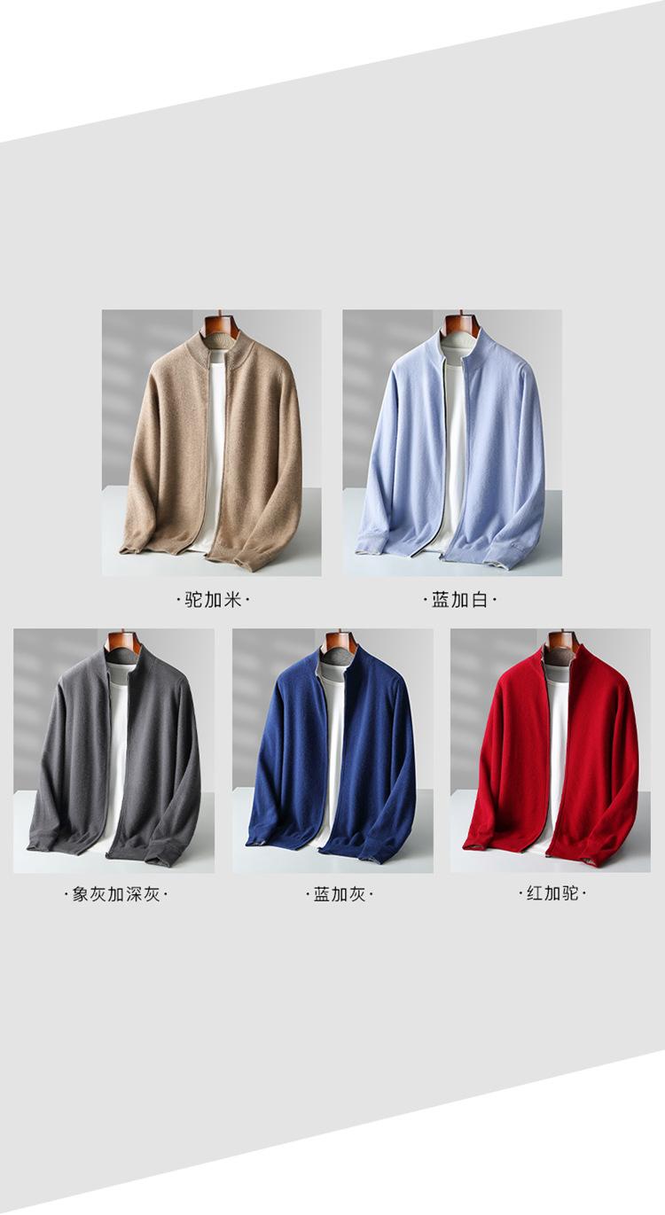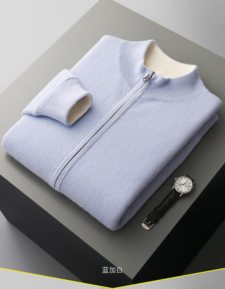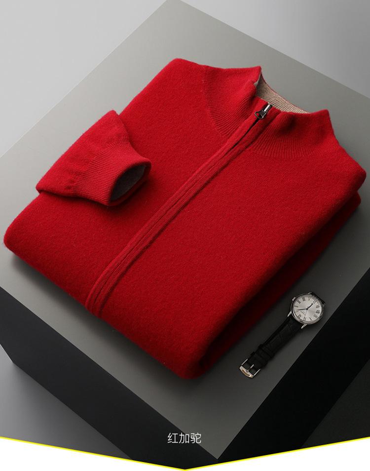 Cárdigan de Lana Nuevo de Otoño e Invierno para Hombre con Cuello Alto y Cremallera, Suéter Tejido de Color Puro, Chaqueta Cálida Holgada de Cachemira, Top