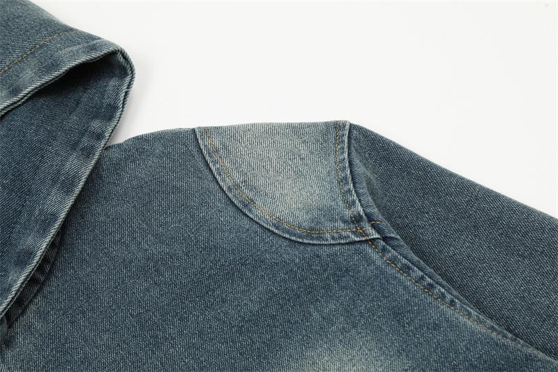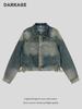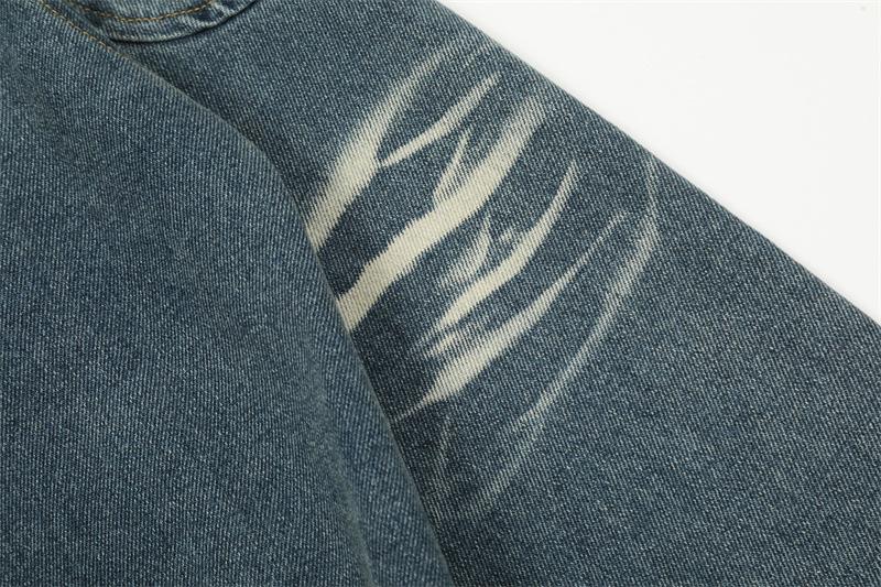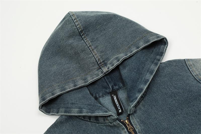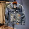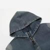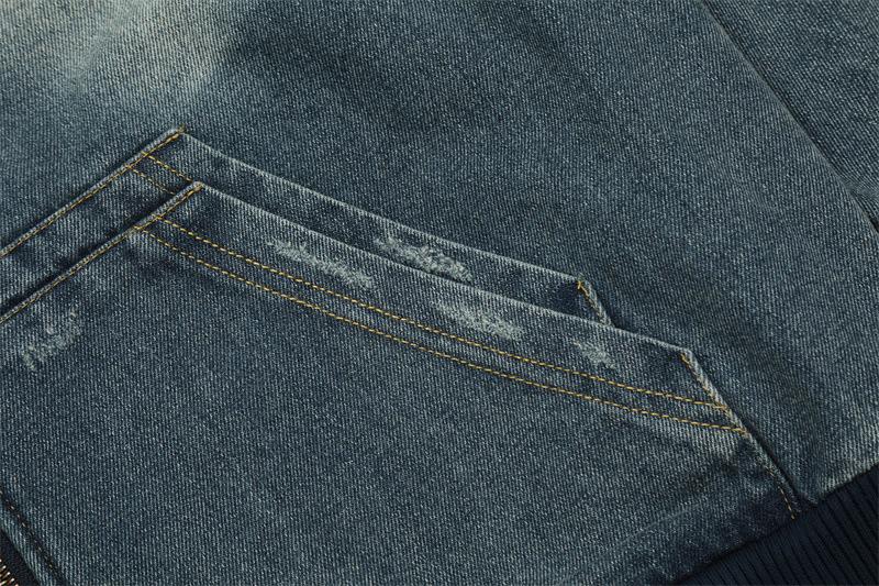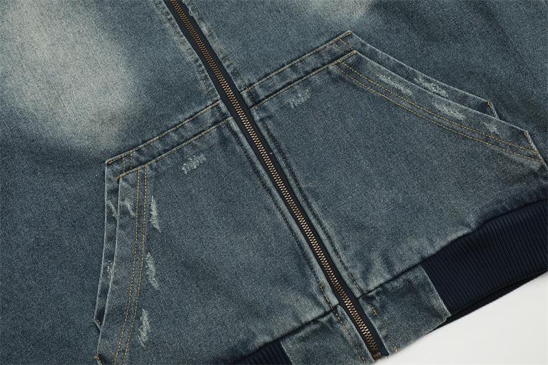 Otoño Nuevo Estilo Americano Retro Blanco Desgaste Marca de Moda Chaqueta con Capucha para Hombre High Street Hiphop Chaqueta de Mezclilla Lavada