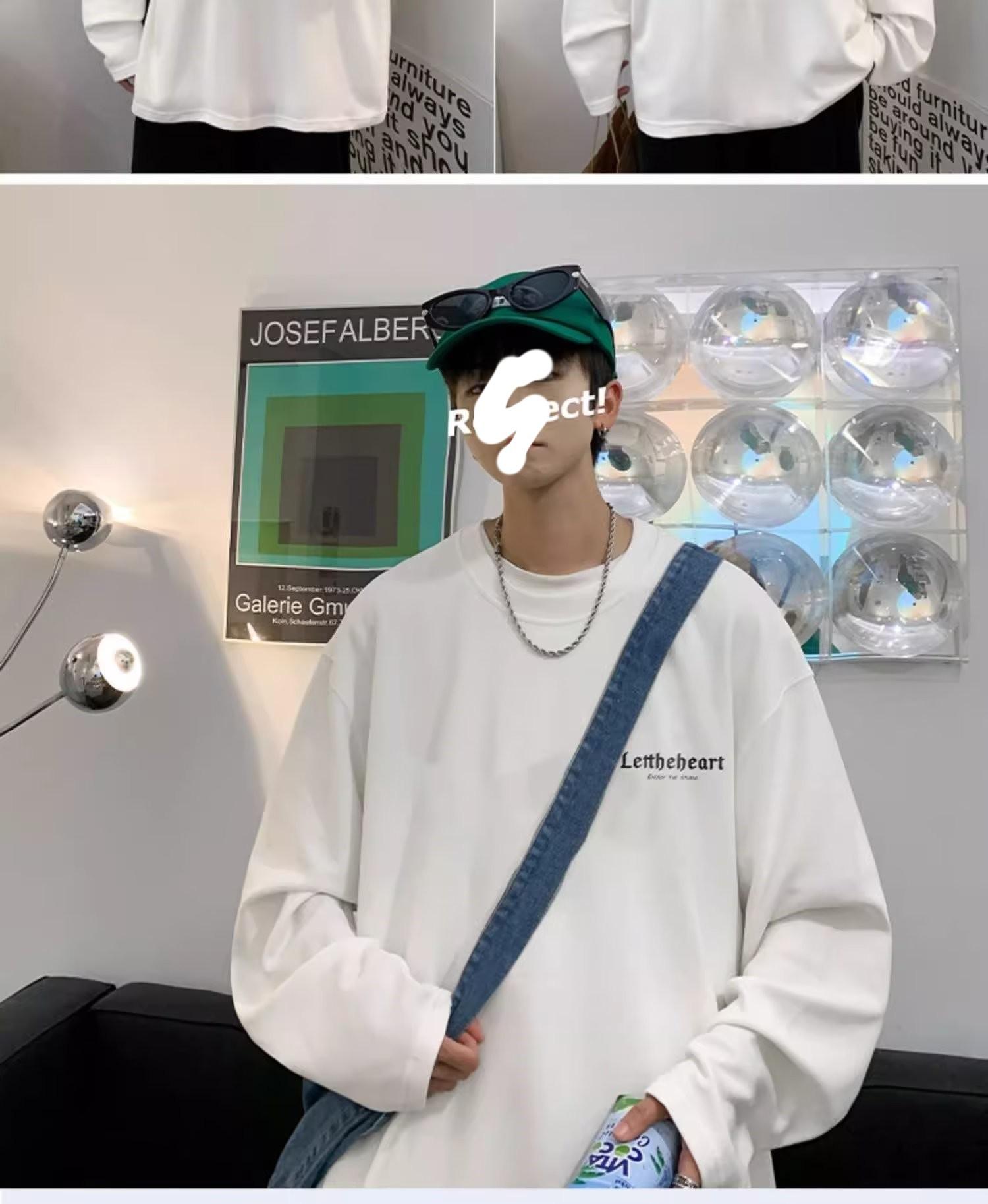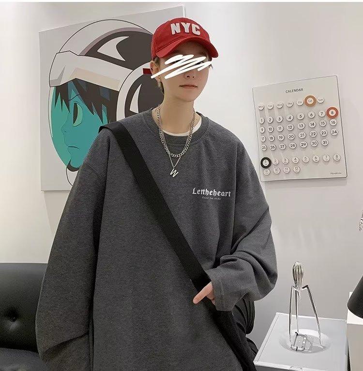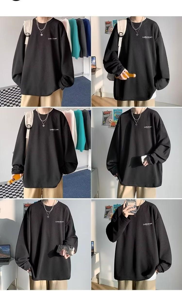 Playera de manga larga con cuello redondo para hombre, nueva tendencia de primavera y otoño, versátil, para llevar debajo, holgada, talla grande, ropa interior, camiseta