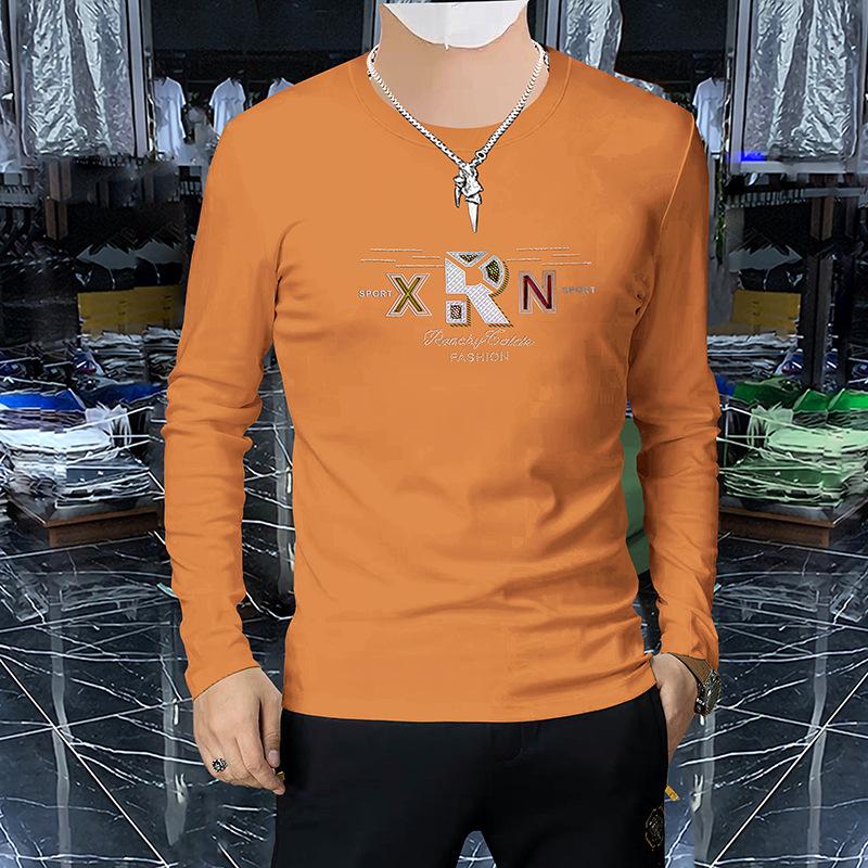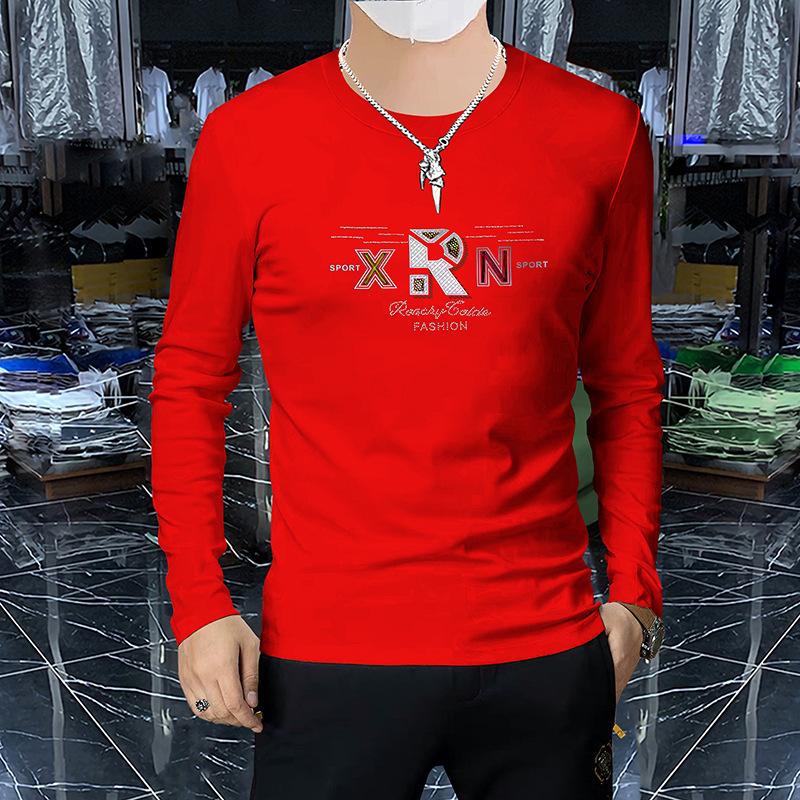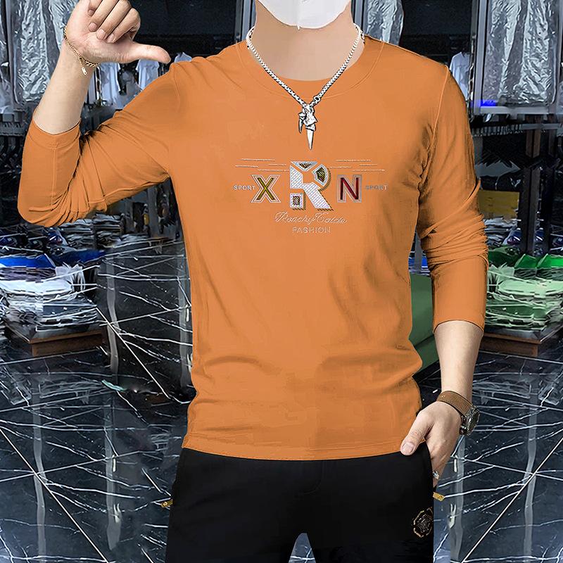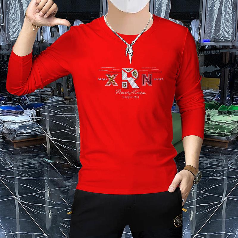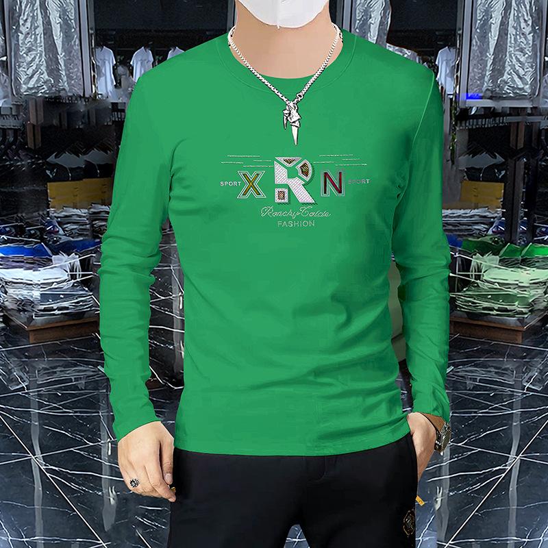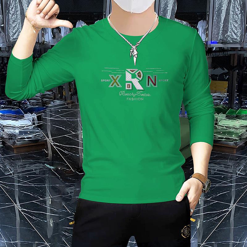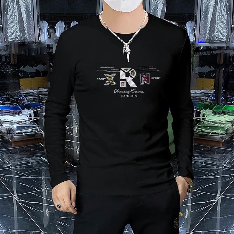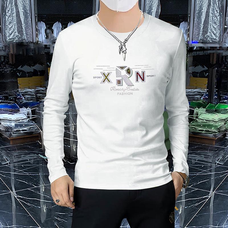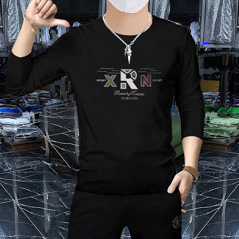 Nueva camiseta de manga larga con cuello redondo para hombre, con estampado de letras, ajuste holgado, estilo europeo, cómoda, para otoño