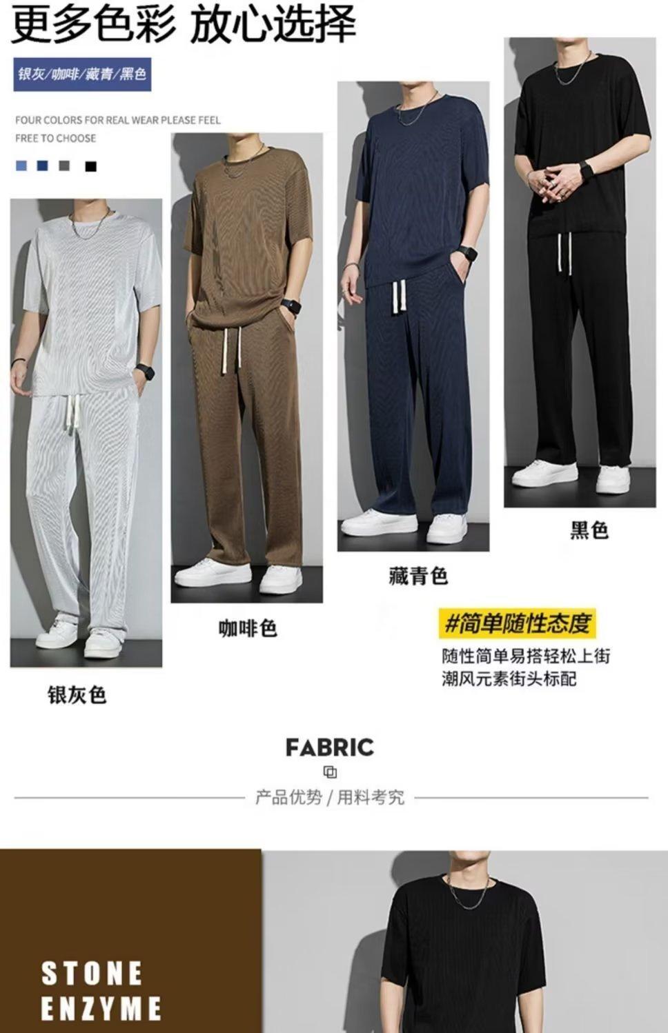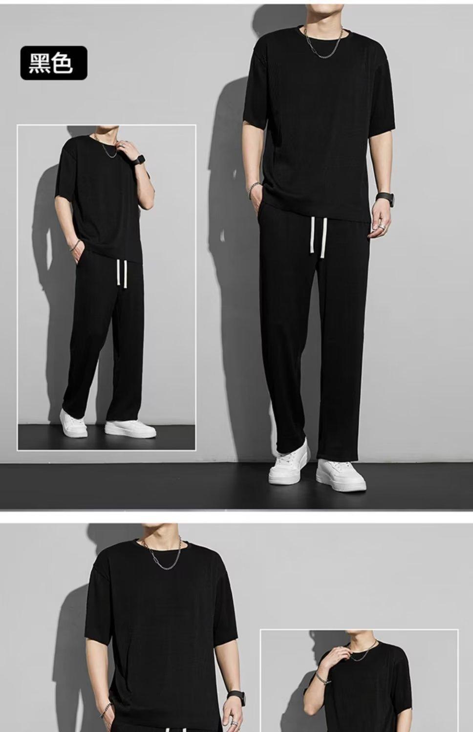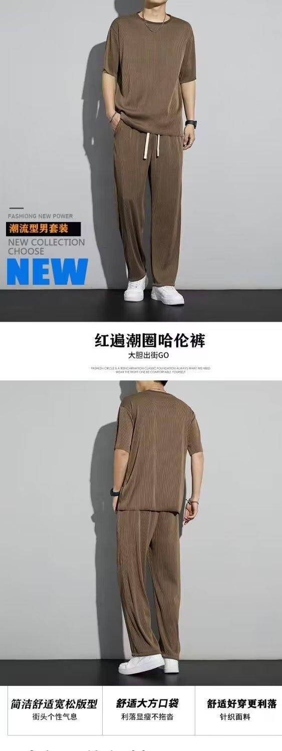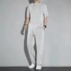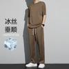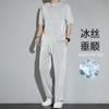 Traje deportivo de seda de hielo para hombre, verano 2023, fino, informal, pantalones largos, camiseta de manga corta, conjunto de ropa de secado rápido